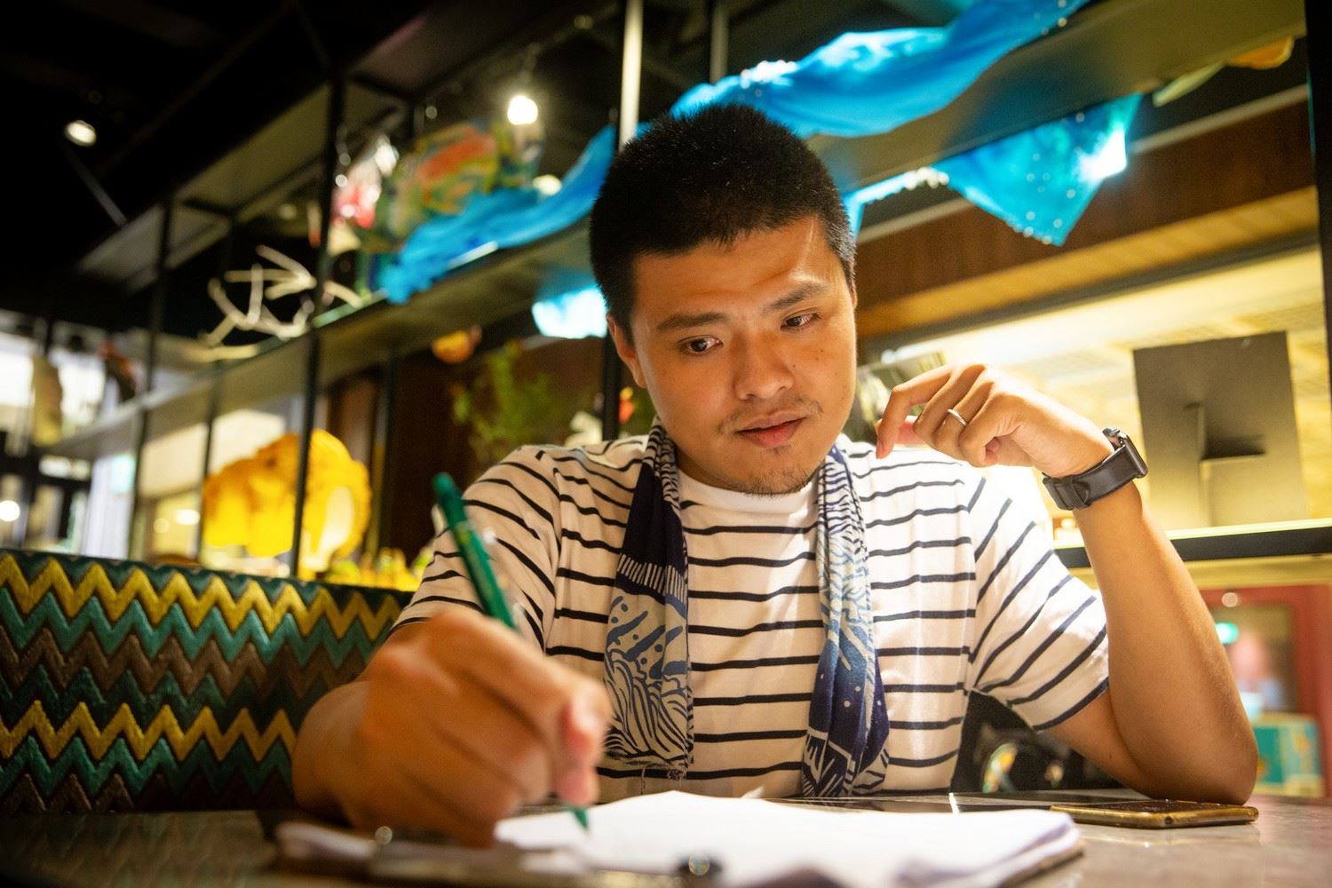 詹傑外表清秀,眼神澄澈宛如小動物,受訪那天像個書生穿著T恤短褲,但一開口卻像個在山裡打過禪的seafood,話語機鋒,俯拾都是通透人生的小智慧。詹傑說,大家都誤會了編劇的人生,以為編劇就是在家裡吹冷氣喝咖啡爬格子,「編劇人生一點都不浪漫,人生不會都是陳綺貞,陳盈潔會比較多。」