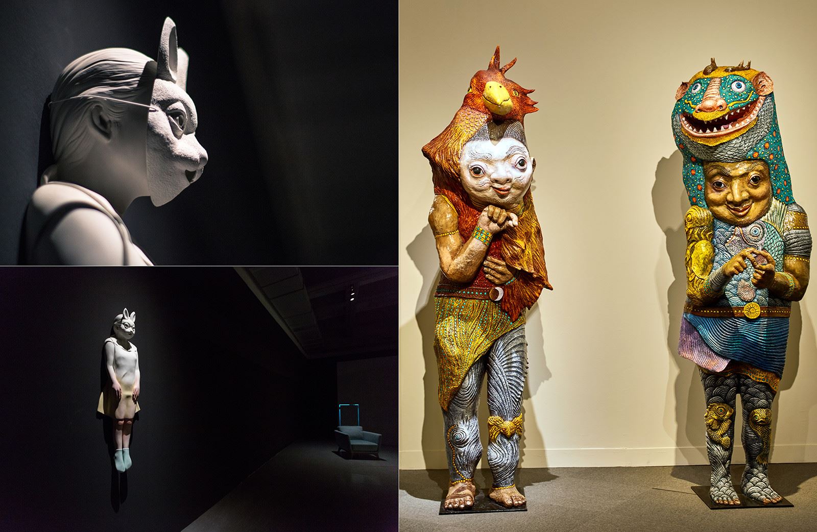裝置藝術方面,何采柔飄浮的兔子面具女郎《半透明》,將在展場創造出既令人熟悉又脫離現實的荒誕氛圍。常藉動物講述人性,認為妖魔總伴隨人性出現的許自貴,則帶來萌系作品《大腳十二生肖》,幽默嘲諷人類的慾望基因。
