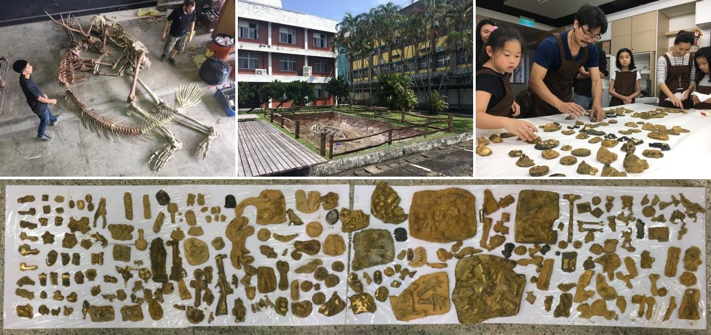 除了室內的裝置藝術作品,空總的戶外草皮區還有涂維政依據張系國的科幻寓言,仿擬的考古遺跡《巨人與巨獸遺跡—義村遺址》,為極具張力、打鬥雙亡的兩具5公尺巨人和7公尺妖怪的骨骸。有趣的是,藝術家還運用工作坊邀請民眾自帶家中物件,翻模仿製成出土文物展出。