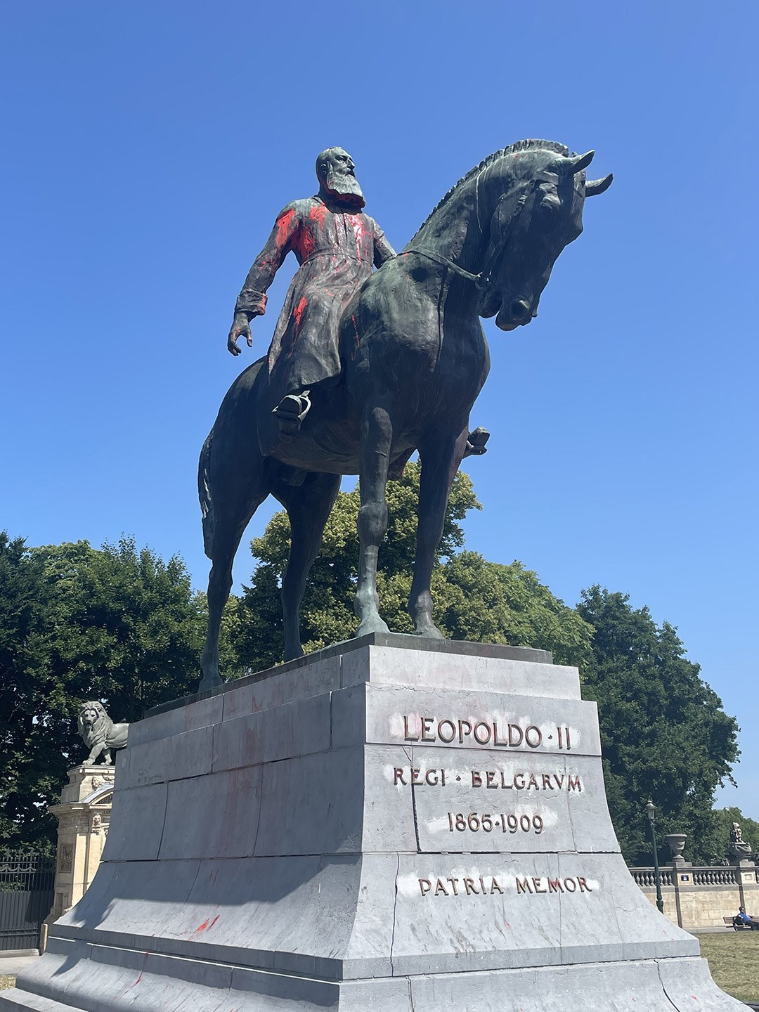 如今,雕像被抗議民眾潑上紅漆,雖不能彌補他的罪過於千萬分之一(有文獻指他曾下令虐殺剛果人數百萬至千萬),總比讓利奧波德二世死後還意氣風發地望著馬同格區好些。