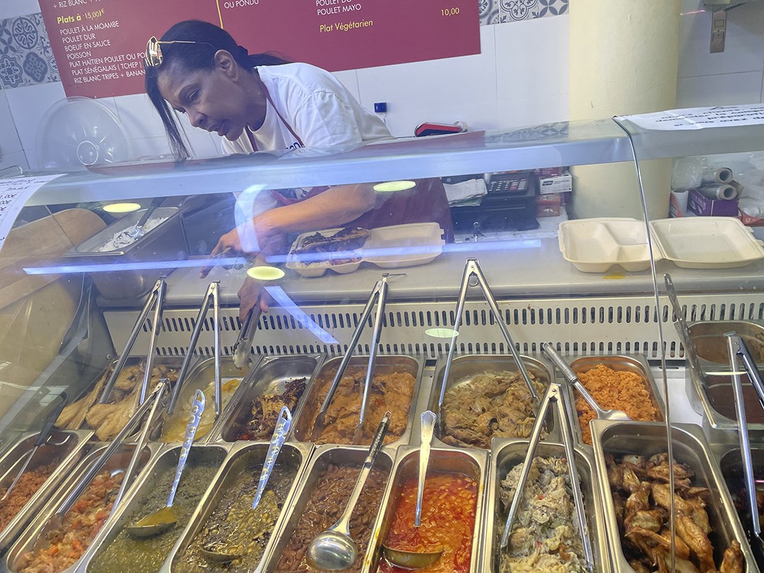 在一對母女經營的小吃店裡,老闆熱心介紹著源自剛果、坦尚尼亞、加彭等不同料理。她來自天災人禍不斷的海地,移居剛果後又來到此地,開店才4個月,努力用不同的家鄉味吸引非洲移民。