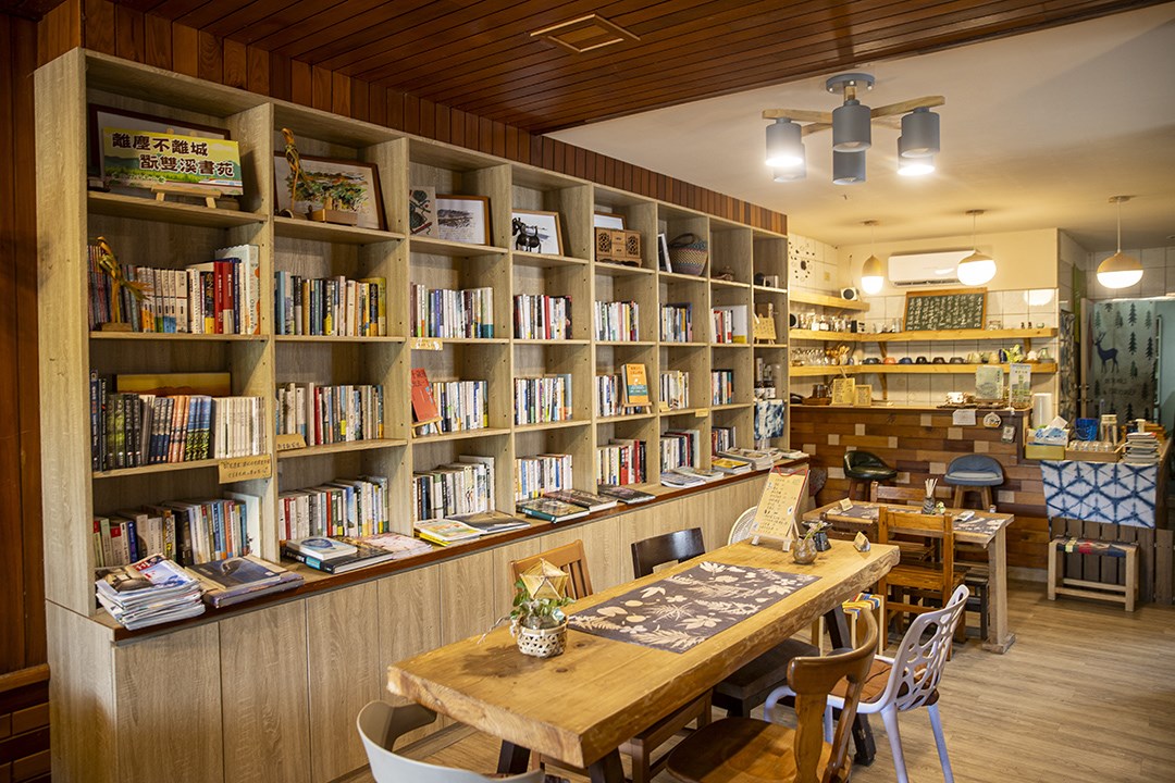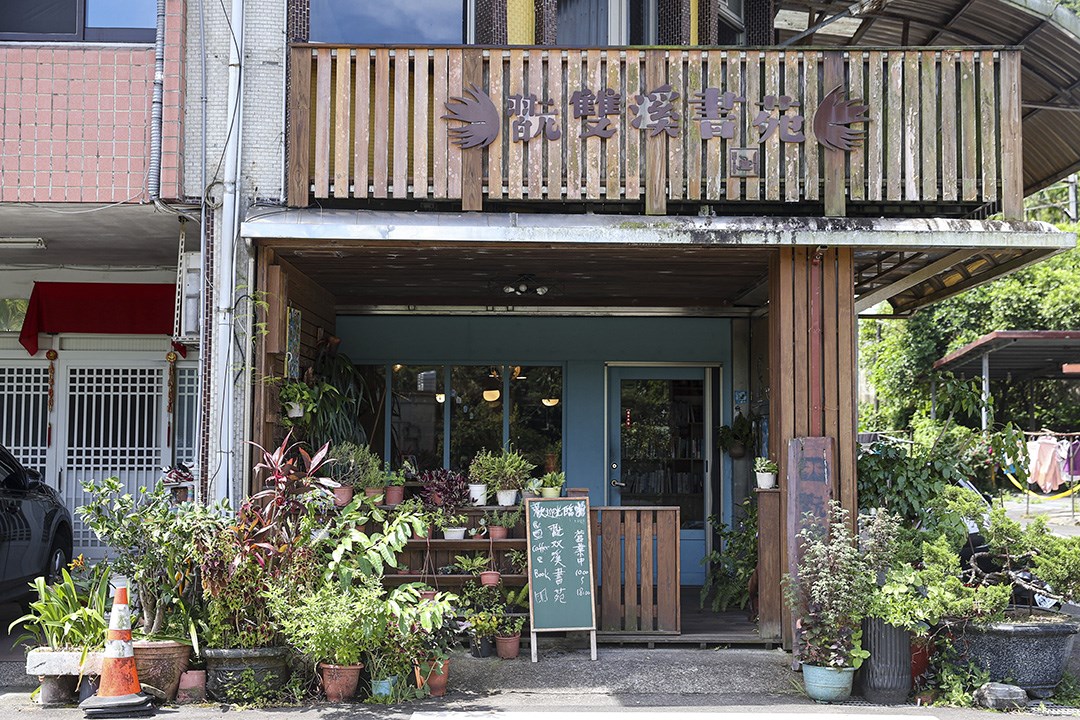 夏日的小鎮,早上10點豔陽高照,書店隔著溪與百年雙溪國小相望,野薑花淡淡的香氣,蝙蝠山徐徐吹來的山風,縱貫鐵路奔馳的火車,交織成從容的樂章,讓繁忙的都市人得以在這裡喘一口氣。