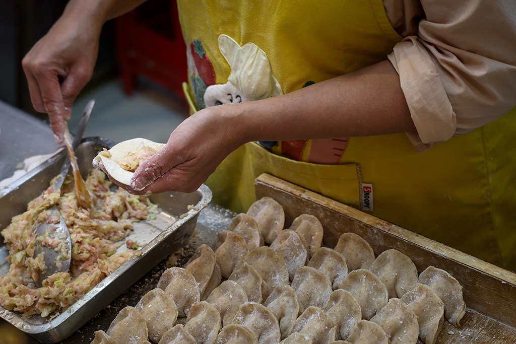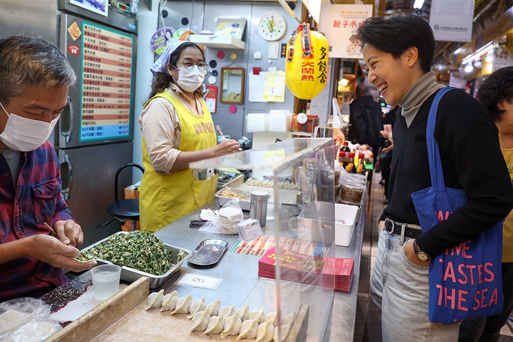 受訪當天,蘇凌晃啊晃地晃到了這家超過20年歷史的老店,夫妻倆看到蘇凌親切問候,還在包著餃子的雙手沒有停下,臉上的笑容也藏不住,「就第一次要來沒先講,就被你們發現。」「就心有靈犀一點通啊!」只見攤內攤外你一言我一語,講的就是隔壁誰家發生了甚麼事,哪個攤位又有甚麼變化,就像在遠方讀書的孩子回家的感覺。