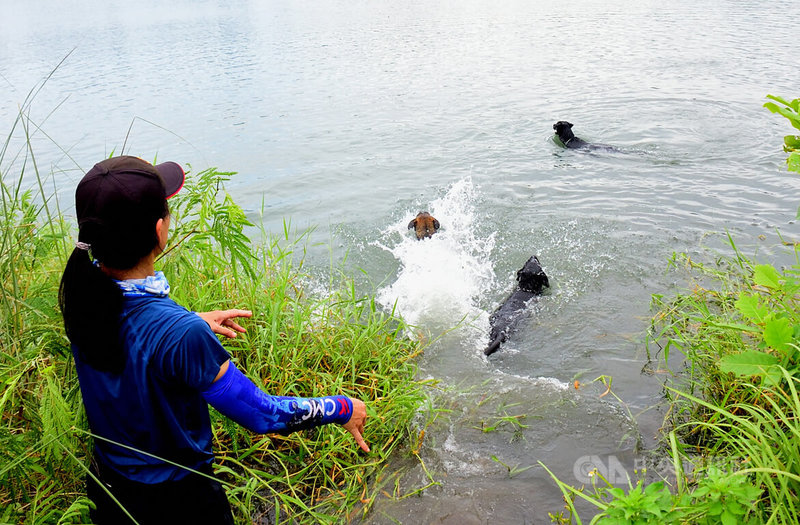 今天冷飲店生意大賣,台東縣消防局人員帶著搜救犬前往台東市活水湖訓練兼泡湯消暑;不過釋迦農則做白工,這幾天晚上幫釋迦花授粉,碰上焚風就失效。