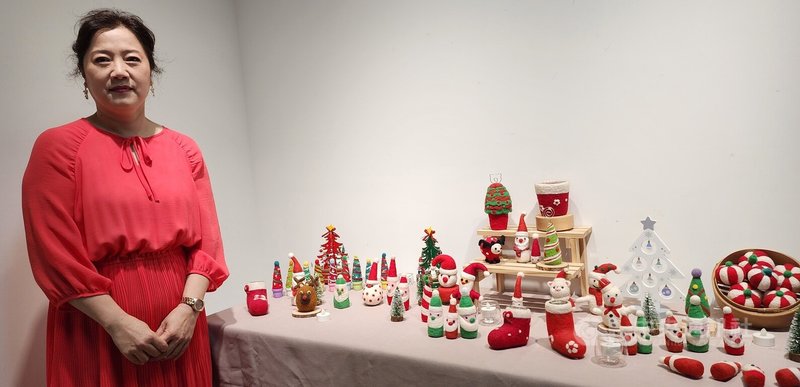 (中央社澎湖縣22日電)「羊毛氈歡樂聖誕節-趙桂妃」作品展,今天起在澎湖縣文化局文馨藝廊展出,利用羊毛氈線一針一戳方式創作超萌可愛作品,包括有黃色小鴨與耶誕節慶玩偶等,令人感到療癒。