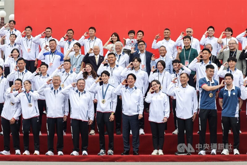 2024巴黎奧運台灣代表團拿下2金、5銅好成績,總統府下午舉辦「台灣英雄榮耀派對」,活動首先由摘下男子體操單槓項目銅牌的唐嘉鴻以及體操選手丁華恬打頭陣,走過由三軍儀隊所組成的榮耀劍門,進入派對現場,隨後「柔道男神」楊勇緯、「台灣蝶王」王冠閎也依序走過榮耀劍門,並揮手致意。