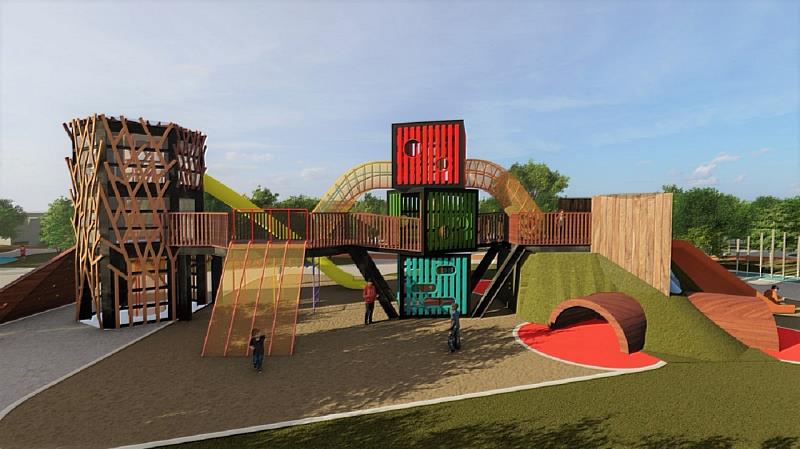 恆春首座共融特色遊具場動工 月琴、城牆、搶孤融入設計