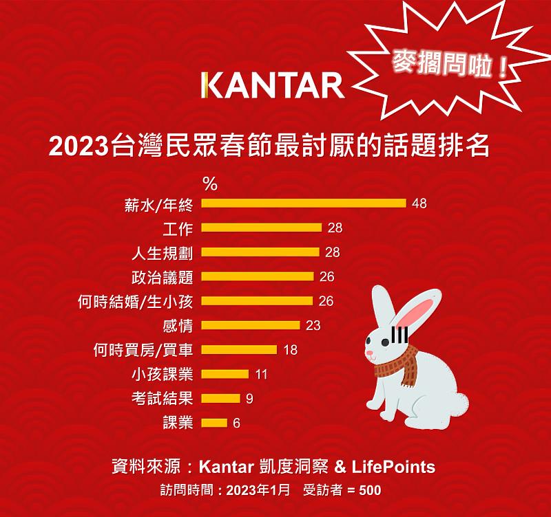 #薪水 #年終 #工作 #最討厭的春節話題 #傳統零食 #過年古早味 #農曆過年 #兔年 #新春調查 #春節假期 #Z世代 #Y世代 #嬰兒潮世代 #凱度洞察 #LifePoints #Kantar