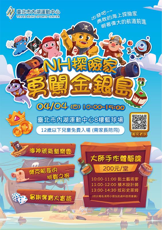 內湖運動中心邀請大家4/4(四)一同歡慶兒童節『NH探險家勇闖金銀島』