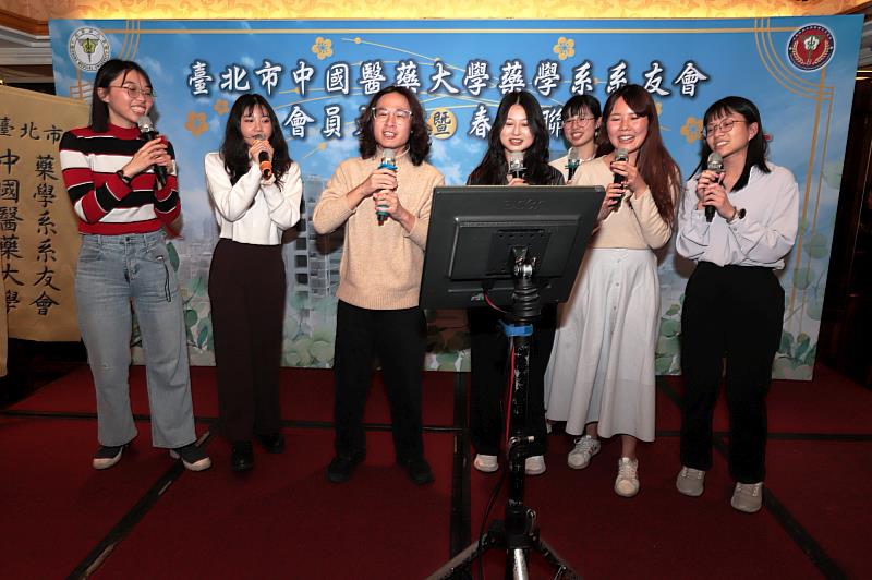 (中央社訊息服務20250312 14:26:37)台北市中國醫藥大學藥學系系友會2025年會員大會暨春酒聯誼3月8日晚於台北市天成飯店盛大舉行,尹岱智理事長邀請各界貴賓蒞會席開30桌,藥學系友歡聚一堂,相續登台歡唱,還有抽獎助與,餐會熱鬧滾滾!