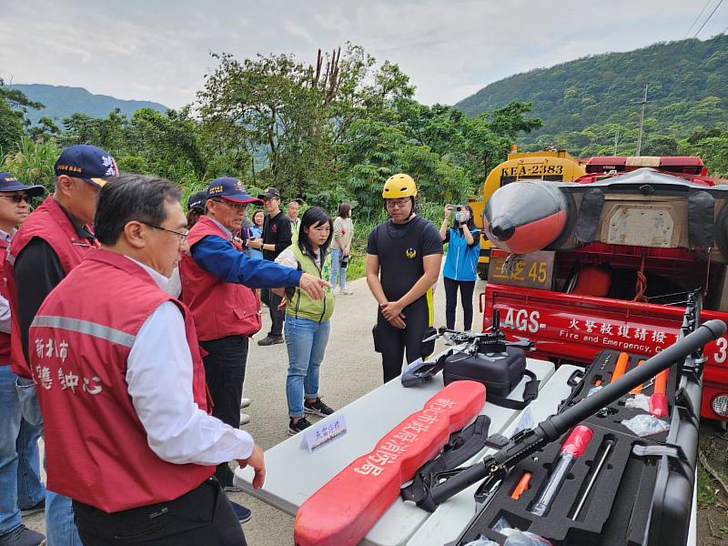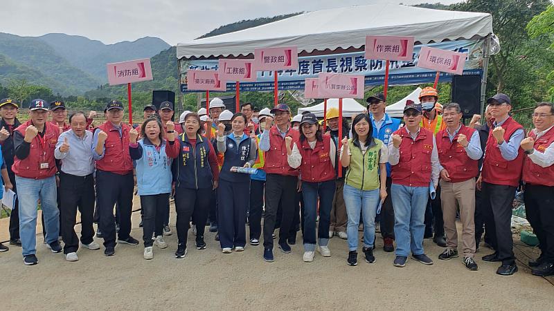 今(8)日開始由3位副市長與秘書長分別前往易發生災害潛勢地區及重要防汛設施進行視察,包括邱敬斌秘書長至三芝區視察八連溪復建工程及陞顯橋封橋封路演練;陳純敬副市長至石碇區視察淡蘭古道復建工程及土石流疏散撤離演練;朱惕之副市長至萬里區,視察員潭溪護岸復建工程及大鵬國小避難收容演練;劉和然副市長至土城區視察大安圳防汛整備情形及複合型防災演練;侯友宜市長主持水利局辦理114年防汛演習,驗收本府整體防災整備總成效。