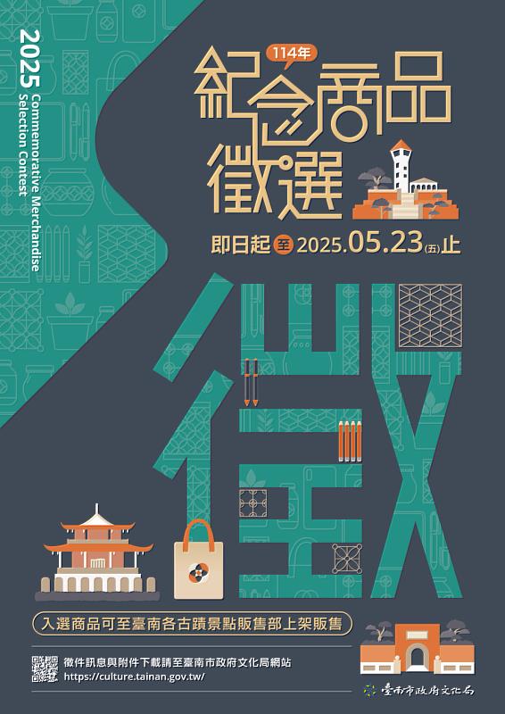 (中央社訊息服務20250411 10:52:38)為推動文化創意產業發展,並建立文創商品進駐古蹟通路的公平、公開選拔機制,臺南市政府文化局今年再度舉辦「文創商品徵件活動」,即日起至5月23日止,邀請全國設計師、創作者與文創品牌踴躍報名參加。透過創意設計,為臺南深厚的文化底蘊注入新生命,同時搶佔古蹟賣店通路,讓您的作品與歷史風華同行。