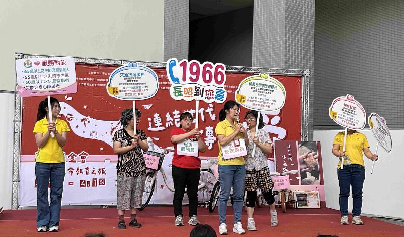 衛生局長趙紋華表示,台灣已邁入超高齡社會,我們透過長照著色卡、話劇宣導讓長照深耕社區、校園,今日「阿好嬸劇場」前進大學校園,希望藉此創造跨域、跨世代老幼共融共好落實長照全齡教育,如有長照服務需求,可洽詢各鄉鎮衛生所長照分站或撥打1966長照專線,將有專人為您服務。