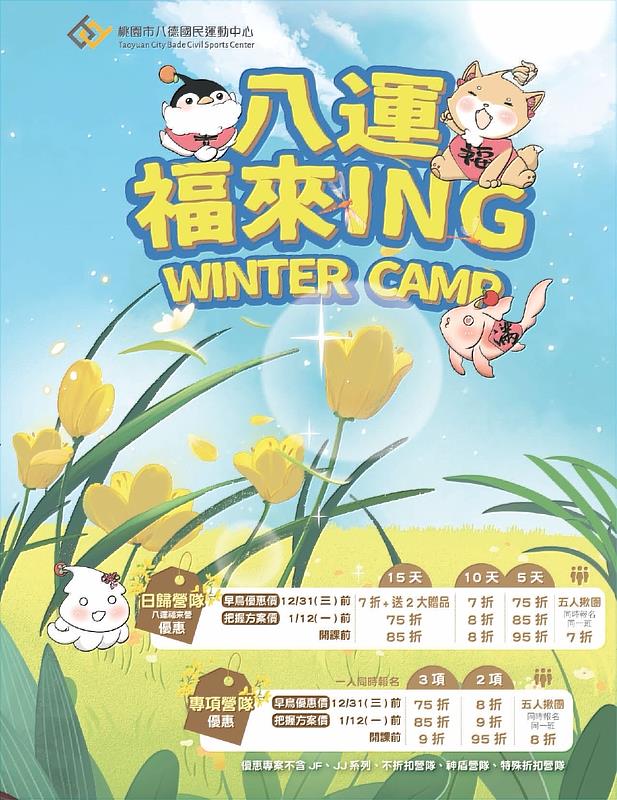 桃園市八德國民運動中心「2026八運福來營」冬令營活動即日起正式開放報名。本次冬令營精心規劃多元且豐富的課程內容,提供家長完善的寒假學習選擇,讓孩子在安全、專業的環境中培養運動習慣與多元興趣,陪伴學童充實度過寒假時光。