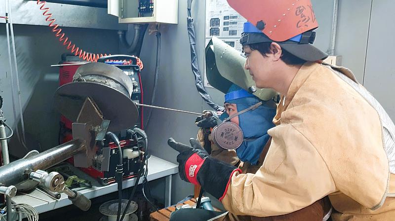訓練過程中,厚重的防護裝備、煙塵瀰漫與高溫的作業環境,對阿忠都是不小的挑戰。即使有職訓師手把手指導,但他仍因溫度掌握不當導致管材受損,或銲料控制不足,使接縫無法完整填實。面對挫折,阿忠並未氣餒,在職訓師耐心指導下,從銲接角度、電流設定到操作手法逐一調整,透過反覆練習逐漸突破瓶頸。他坦言:「抓到訣竅後,不只順利通過考試,也學會在工作中保持冷靜,遇到困難能更有效解決。」