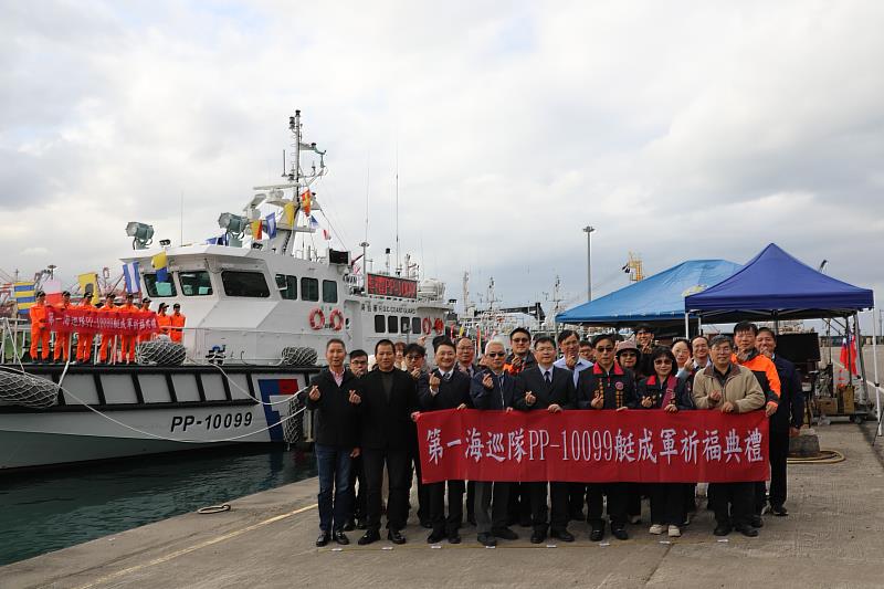 (中央社訊息服務20260129 17:28:25)今(29)日下午,海巡署艦隊分署第一(基隆)海巡隊假基隆港東16碼頭舉行「PP-10099巡防艇祈福典禮」,由艦隊分署蔡崇謀副分署長主持,並邀請基隆區漁會簡理事長、萬里區漁會林理事長、國立台灣海洋大學劉副教授、海巡之友總會艦隊分會顧問團等貴賓共襄盛舉,正式宣布PP-10099艇成軍,加入東北角海域防線,並共同祈願國泰民安,祝福新艇執行各項維護漁權、守護主權及海上巡弋任務一切順利、平安。