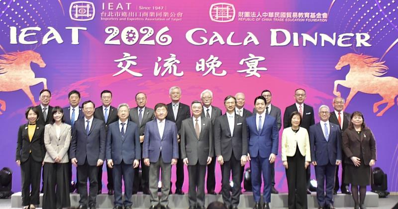 IEAT於2月4日舉辦「IEAT 2026交流晚宴」,行政院院長卓榮泰、僑委會副委員長李姸慧、IEAT理事長黃教漳,與中央及地方政府首長、來自全球5大洲34國、80位駐臺使館及外國機構代表、公會全體理事、監事出席,共同展望全球市場新局勢。