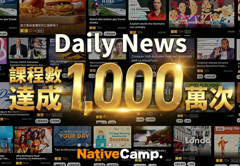 線上英語會話平台Native Camp宣布,旗下原創時事教材《Daily News》累計使用堂數正式突破1,000萬堂課。這項數字不僅象徵教材長期被大量學習者選擇,也反映出使用新聞教材的英語學習方式,已逐漸成為日常口說訓練的重要選項。