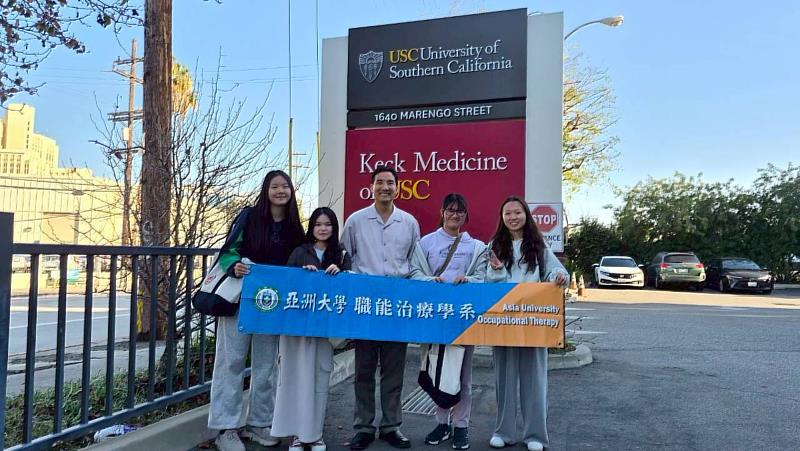 (中央社訊息服務20260309 16:30:04)由教育部「學海築夢」計畫與亞洲大學共同資助,亞洲大學職能治療學系洪安恬、許怡煊、蘇盈禎與劉子琪等4位學生,於2026年初完成為期1個多月的美國南加州大學(University of Southern California, USC)學術交流活動。這趟旅程不僅讓學生走進全美頂尖的職能治療殿堂,更讓他們在科技、動物介入與高齡化議題中,反思職能治療(OT)如何連結人的「尊嚴」與「自主性」。