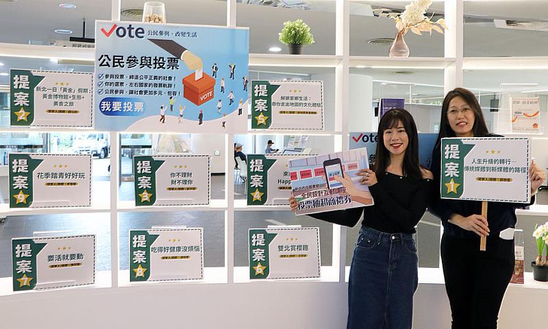 新北市「全民設計互動系列講座」共有9項提案進入票選,包括職涯轉型與自我成長的「人生升級的轉行(傳統媒體到新媒體的路徑)」、「跑出舒適圈,發現更好的自己」;投資理財的「你不理財,財不理你」;健康生活的「要活就要動」、「吃得好健康沒煩惱」;多元文化的「解鎖家鄉生活-帶你走出地圖的文化體驗」;以及休閒旅遊的「花季好好玩」、「新北一日『黃金』假期」、「雙北賞櫻趣」等,3月27日至4月15日止開放全民票選,歡迎大家到「新北市政府公民參與網路投票系統」進行線上投票,參加投票還可以抽100元超商禮券。詳細資訊請至新北市立圖書館網站查詢http://www.library.ntpc.gov.tw。