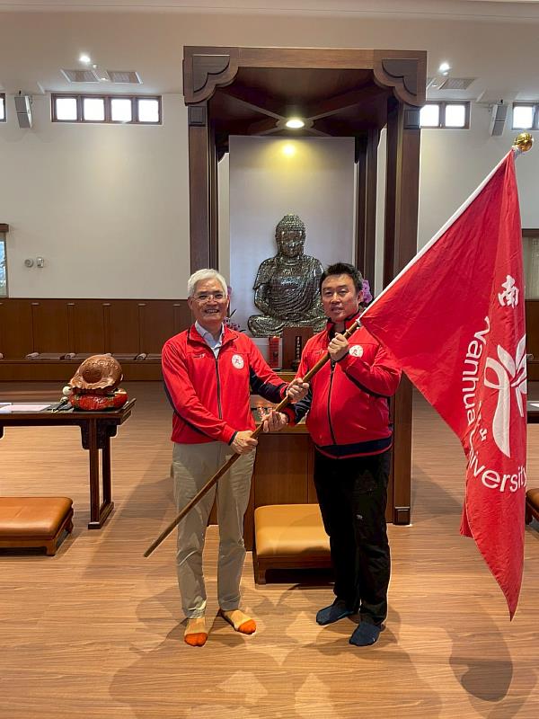 南華大學甲組棒球隊在完成授旗儀式後,正式整裝出征115年全國成棒甲組春季聯賽。本次活動不僅象徵賽事的起點,更透過佛法精神與文化象徵的結合,深化團隊內在信念與凝聚力。全校師生期盼球隊在新賽季中,以穩健表現與堅定意志,再創佳績,持續為南華大學締造榮耀。