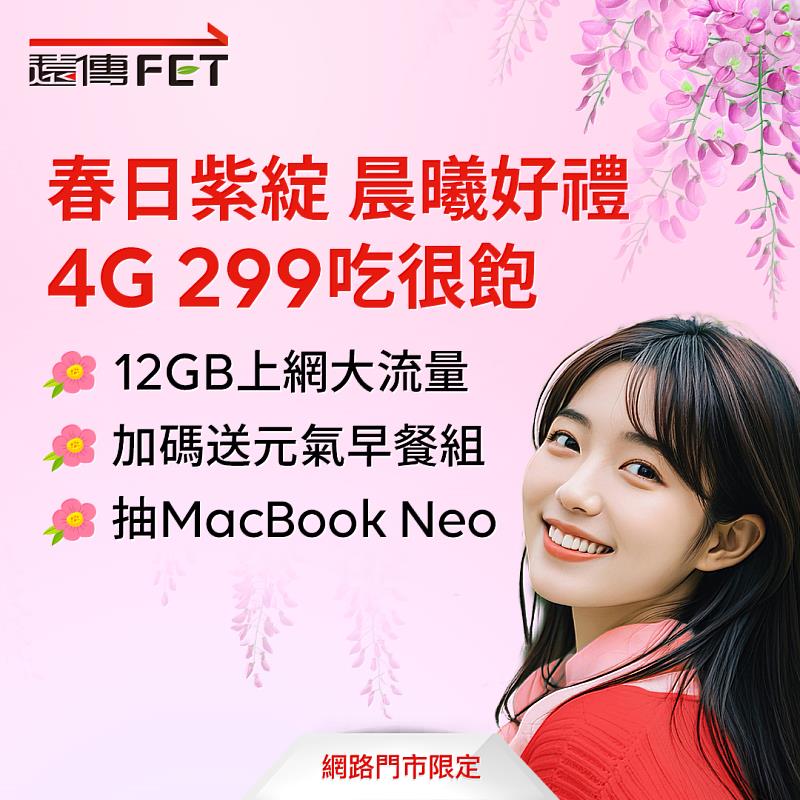 (中央社訊息服務20260407 10:59:12)申辦299元起資費就送超商早餐券 最高送3,000遠傳幣、再抽最新MacBook Neo 續約即可參加999玩樂金抽獎