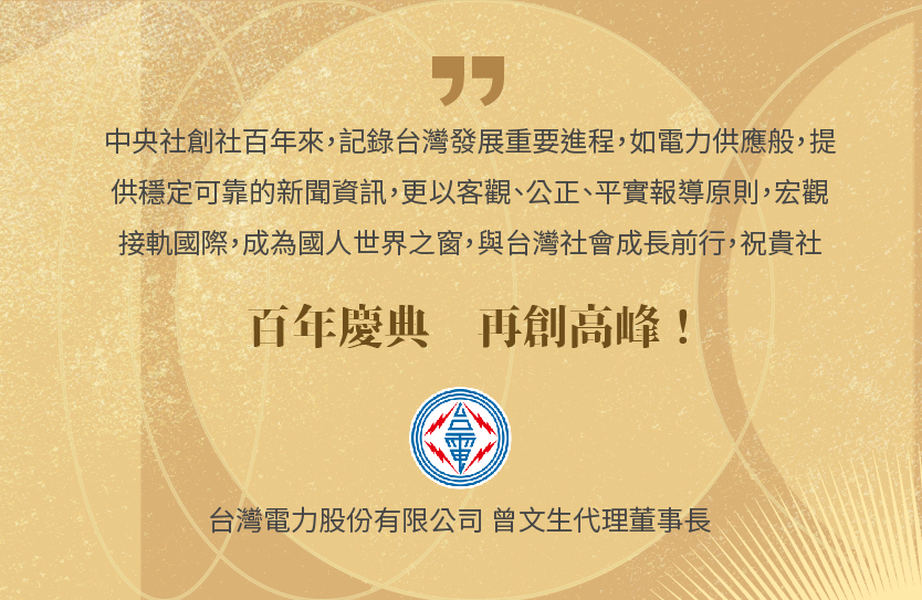 蕭副總統出席酒會致詞表示,100年是很長久的數字,放眼全世界創立滿百年,而且還在營運的新聞媒體,可能在歐美國家還有一些,但是像中央社這樣親身見證,記錄整個東亞局勢百年變遷的華文媒體,非常難得。