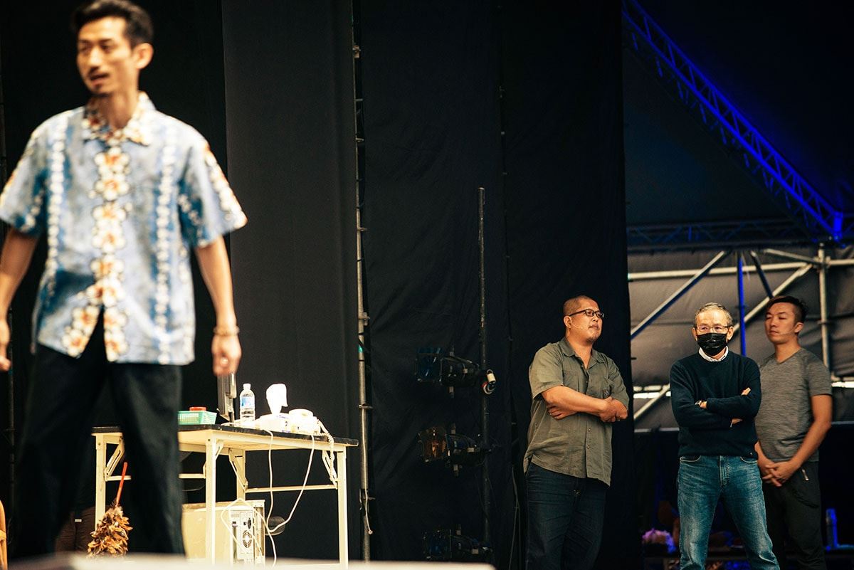 隔了一段時間,他又轉頭說,「開心啊,當然,但我沒想過人會這麼多。只是,戲劇本來就該這樣,跟生活在一起,跟觀眾在一起。」他說,希望這只是個開始,他想要再與觀眾在戶外相見、再讓「人間條件」以野台演出與觀眾見面。