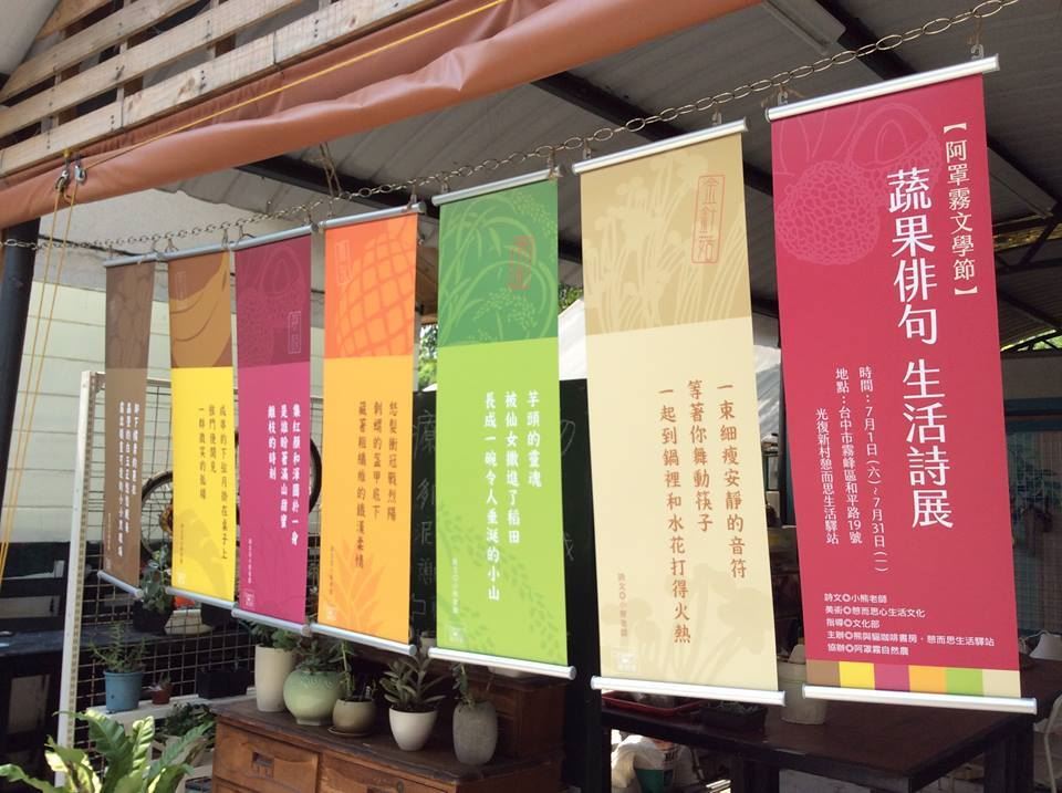 憶起第一屆「阿罩霧文學節」的初創精神,到了第二屆文學節主題為「走讀台中城南」,落實文學與土地一家親,以「常民詩學」的精神推廣文學,結合自然農市集與「蔬果俳句生活詩展」,讓詩充滿花果香。而自己亦有幸親身參與第二屆文學節活動,在霧峰萊園山坡上「藏藝會館想素樸藝術廣場」大樹下,與音樂人小實分享美好詩樂,吃著當地居民親手製做的豆花、點心,春日微微,登山的居民駐足聆聽,四處打鬧的小朋友不時回頭一起哼哼唱唱,不認識的認識文學的朋友們,攜手共度文學的下午,有許多都不是耕耘文學的手,因土地而牽起,並肩席坐,因文學而交心,懷想阿罩霧的今昔,讓我不禁感動著「文學節」落實在地化的獨特風貌。為了讓文學的滋味在生活中持續發酵,只要是能興起生活共好的各種滋味,都可以是文學節的「酵母」,原來,「文學市集」的常民精神更能夠再造「文學節」的真正意涵!