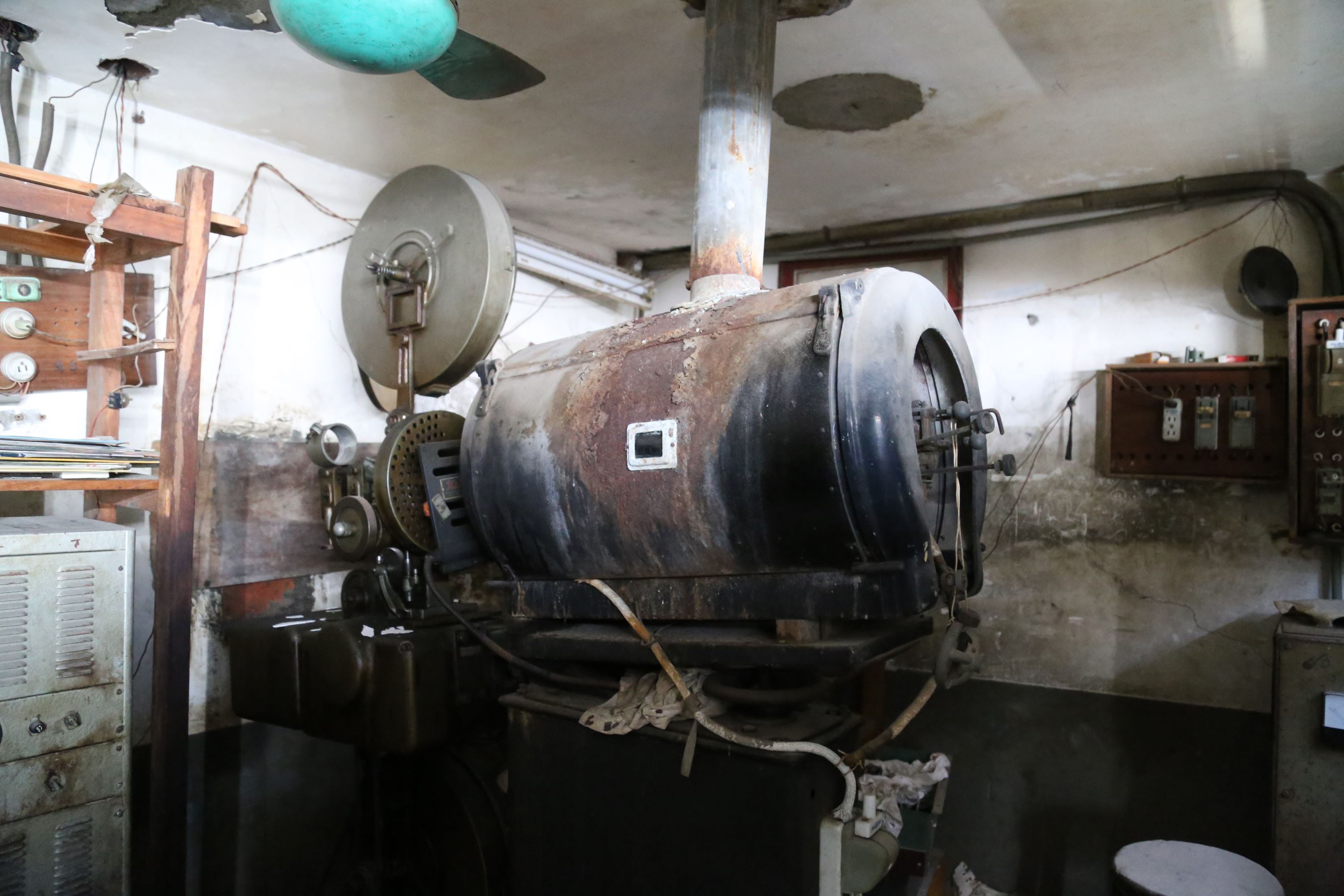 這些放映的器材、燈箱、傳動輸片裝置、舊底片等現仍然塵封在老戲院裡。跟著陳威僑走進小小放映室,隱約聞到醋酸底片散發出的刺鼻味。