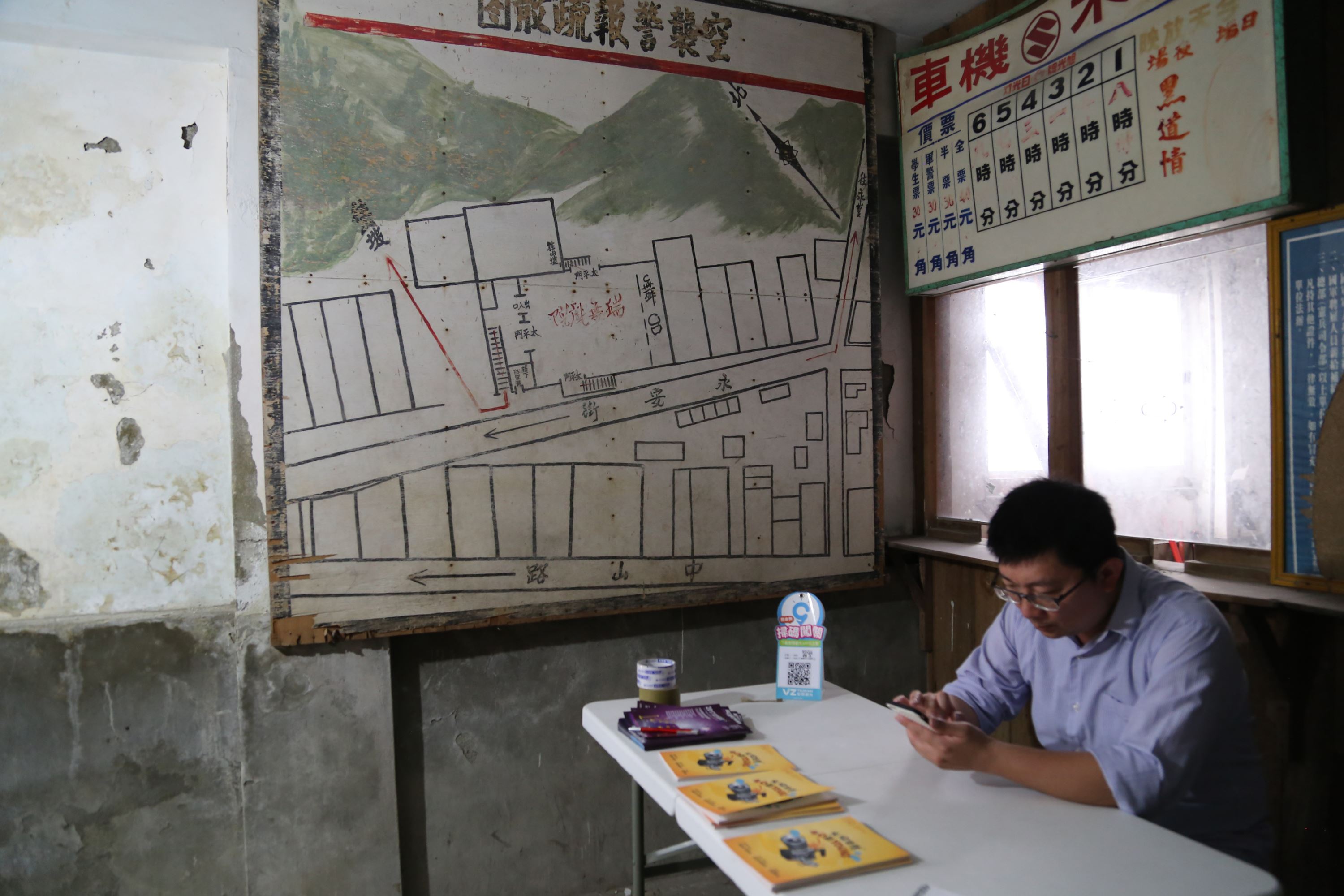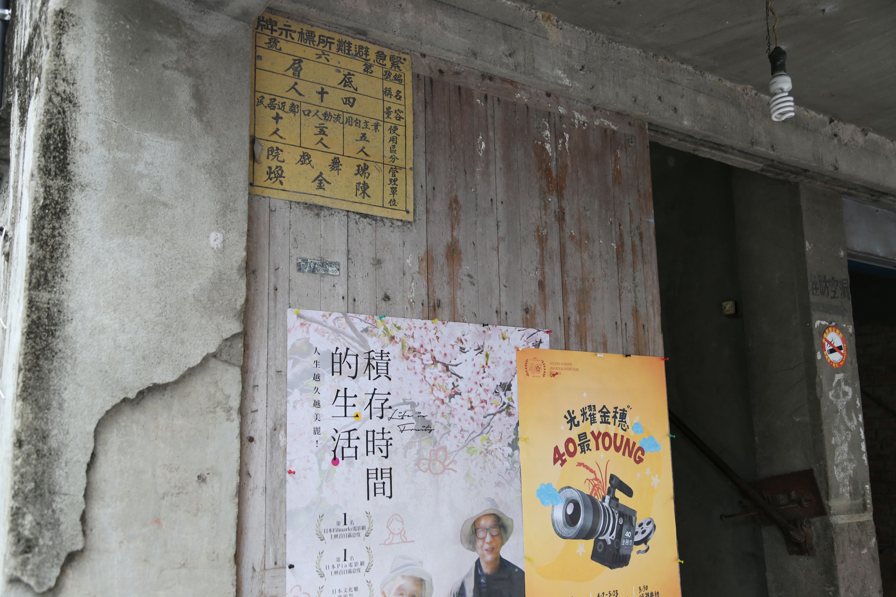 戲院門口仍掛著當年緊急避難資訊牌,上面寫著「負責人:陳金煥」。陳威僑每次回到老家,看著這塊牌子,總是在心中念著:「阿公,我回來了。」