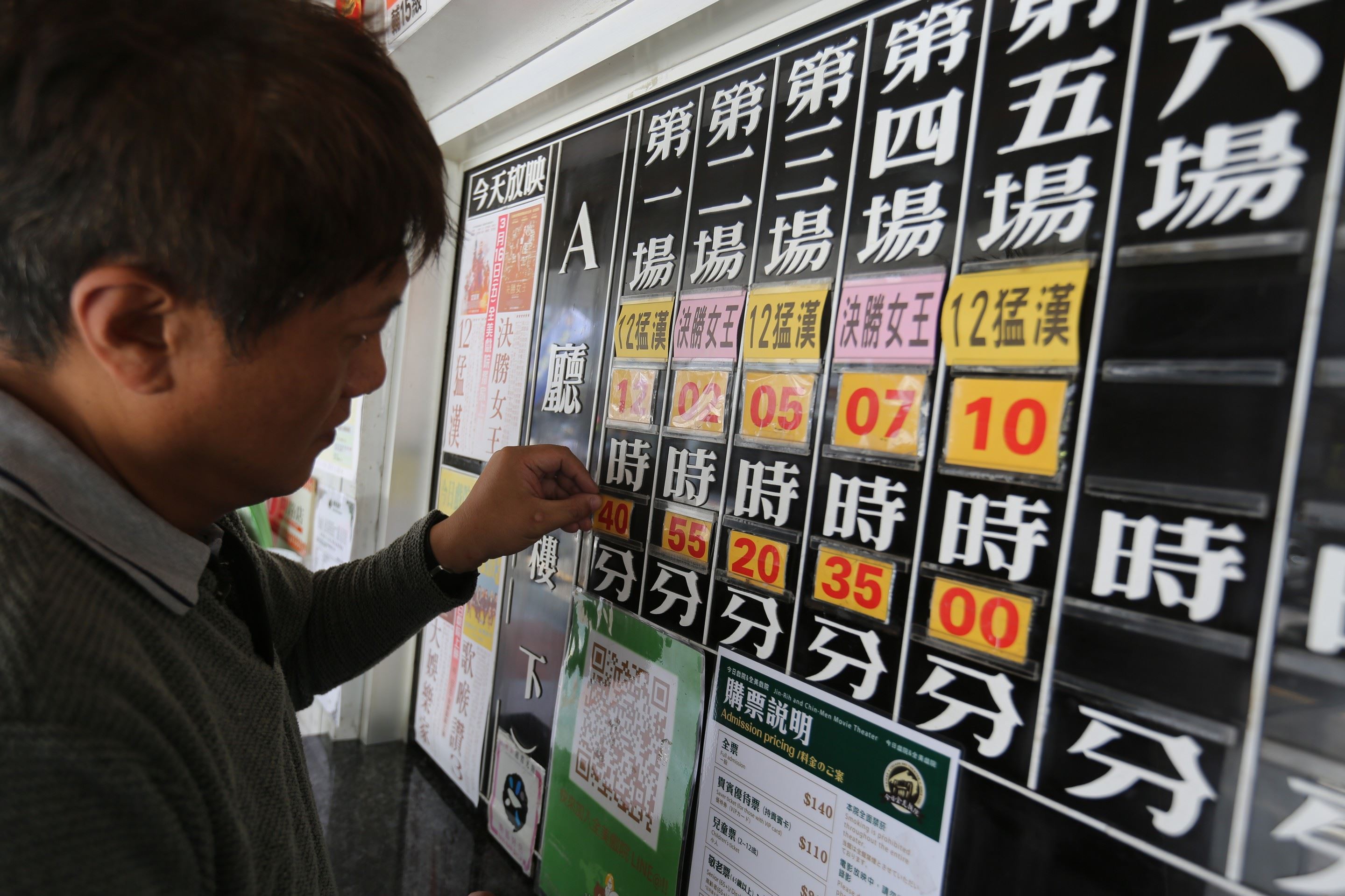 蔡顯隆在2樓辦公室說著說著,又到了電影播放時間,剪票員打起精神迎接新的場次,影迷看著售票口上方時刻表,思量著是否要入場,還是乾脆租電影光碟回家躺在沙發上,瞬間的考量,決定老戲院未來的命運。