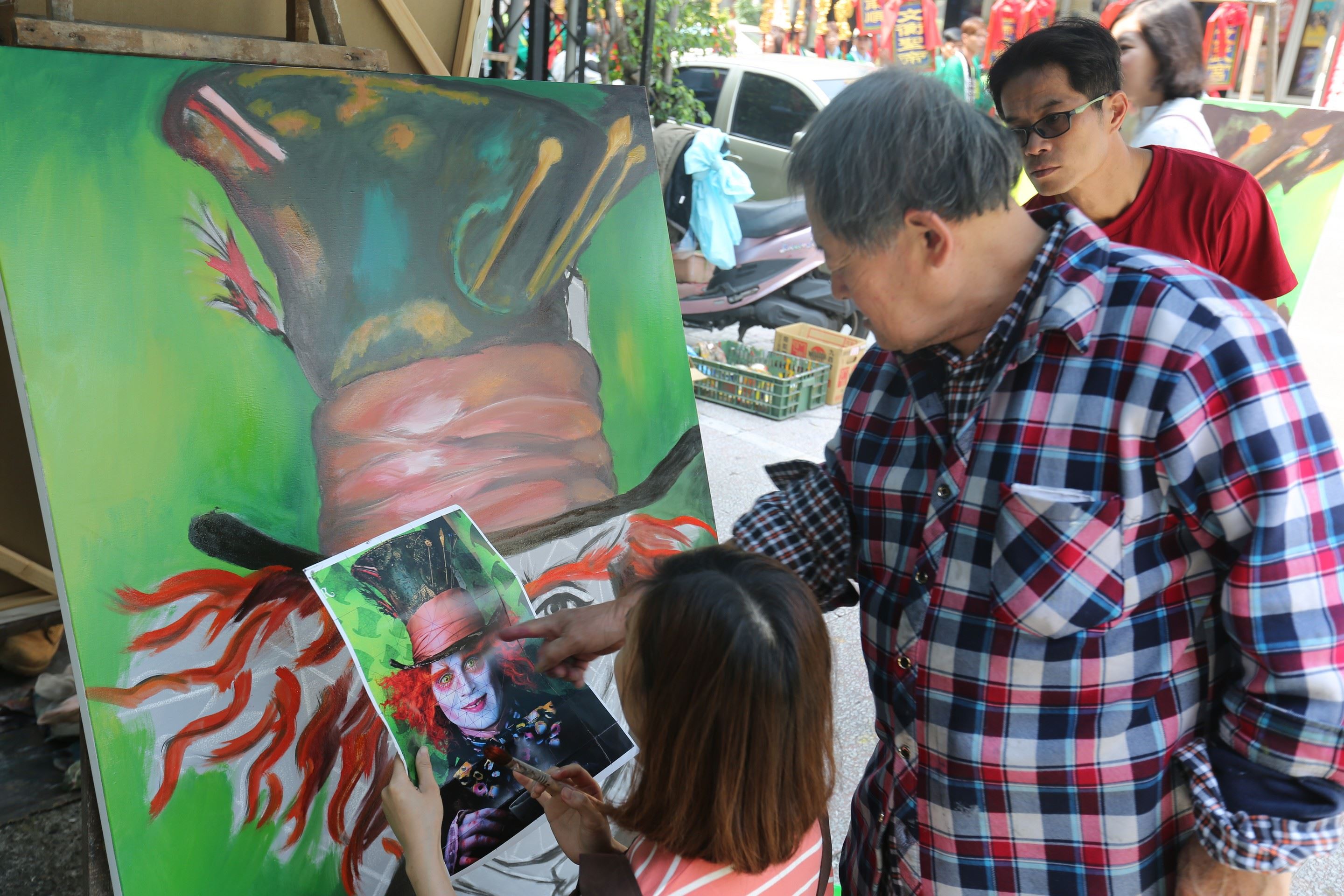開辦3年多的手繪研習營,地點就在全美戲院對面停車場空地,課程是每週4堂,每堂3小時,課程內容只是畫一張電影看板。說來好笑,參加研習營的人,超過9成不會畫畫,只是單純地有興趣。一名蹲在路旁的女學員,一手拿著電影海報,一手以畫筆指著全美戲院說,她每天都會經過戲院,看久了,興緻也來了,就報名作畫。