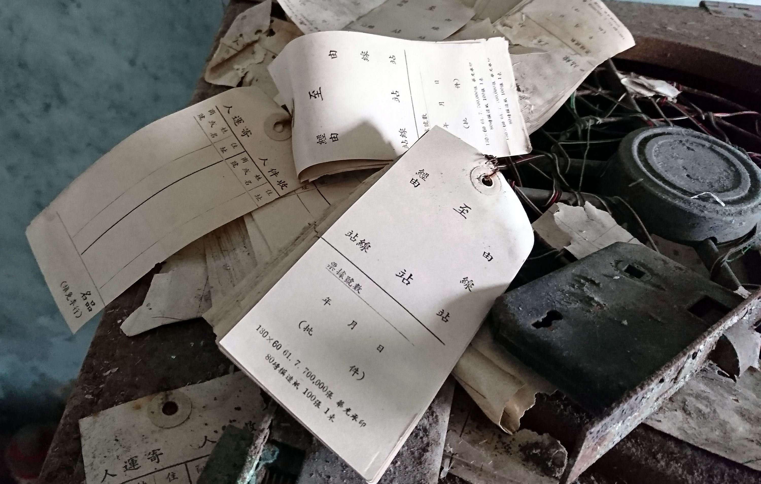 走進2樓播放室機房,兩部生鏽的35釐米電影放映機,依然矗立在電影放映孔前,電影膠卷還放掛在放映機上,透過外面的光線,可以看到膠卷上的影像和字幕。