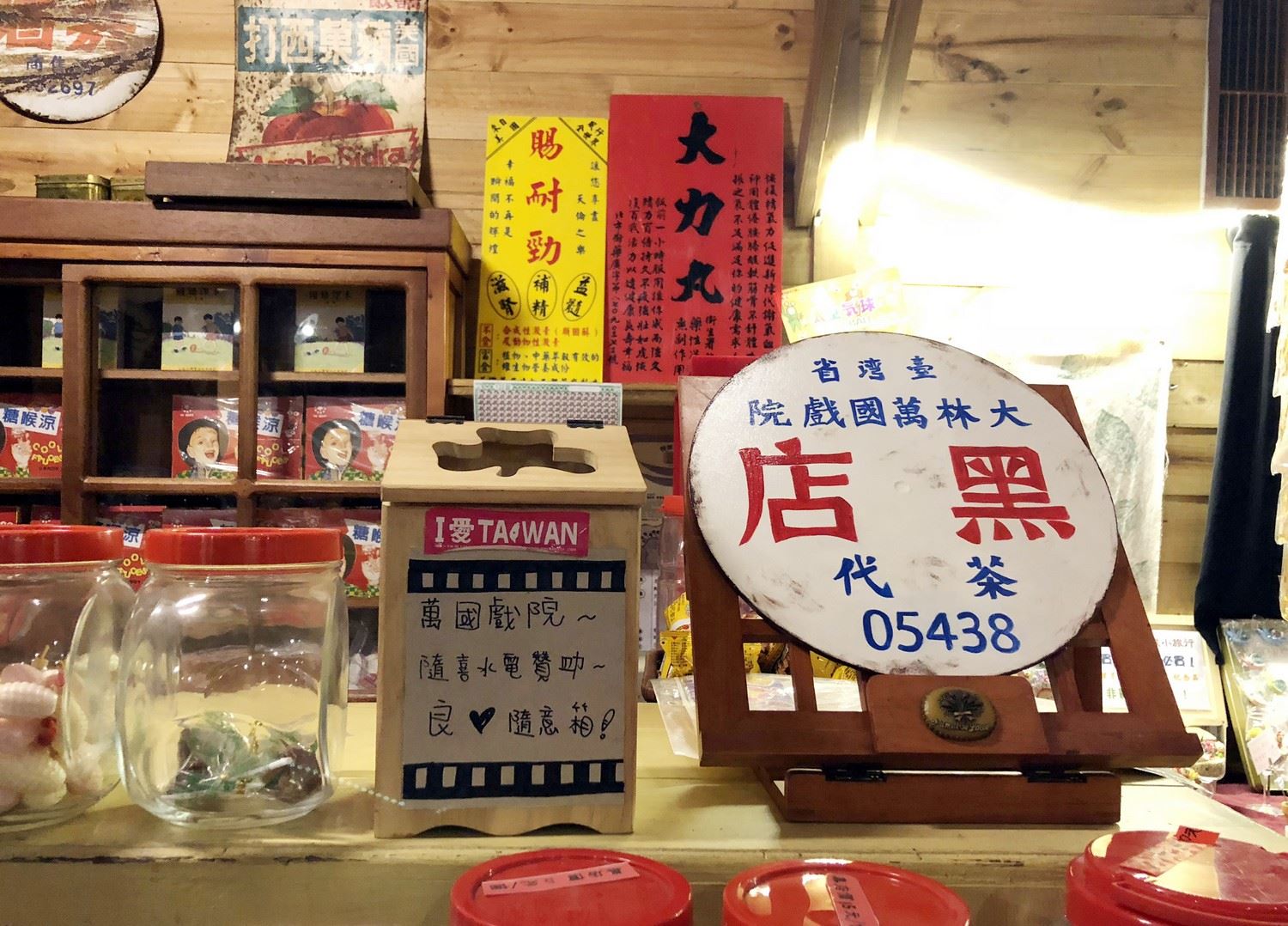 戲院內還有早期可以防盜的響櫃,以及江明赫收藏的手搖式留聲機,搖動後,唱盤傳出悠揚英文老歌旋律。舞台後方設立販賣部的布景,真的賣著彈珠汽水、泡泡糖和抽抽樂等古早零嘴。假日戲院劇幕播放早期黑白影片,遊客來來去去,無法看完整部片,不過,有時看到早期王哥、柳哥詼諧的對話及逗趣肢體動作,仍讓人會心一笑。