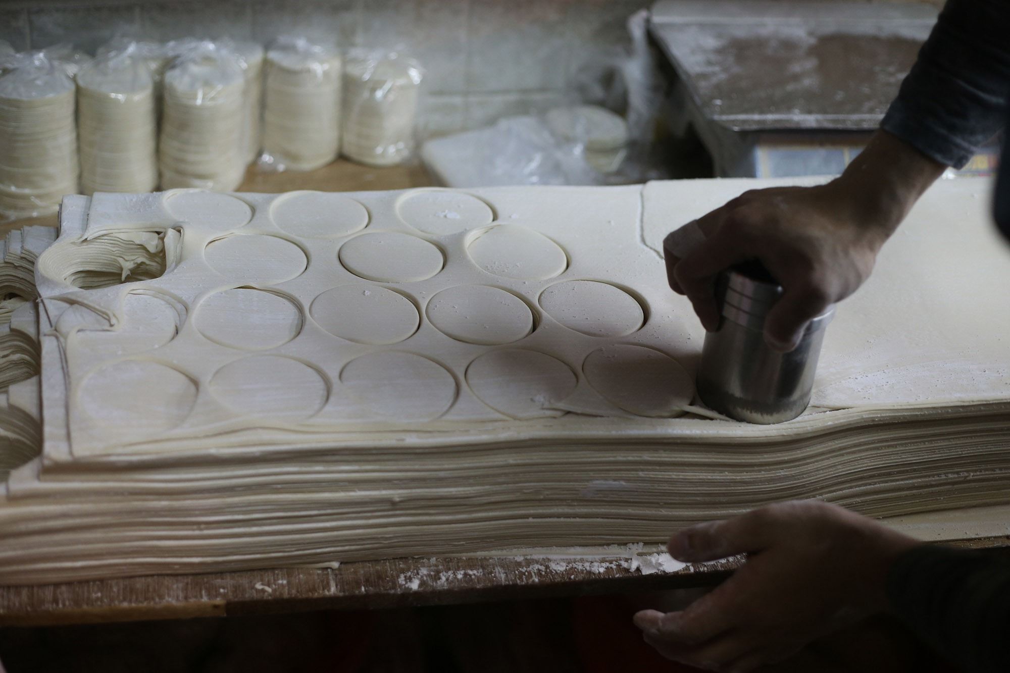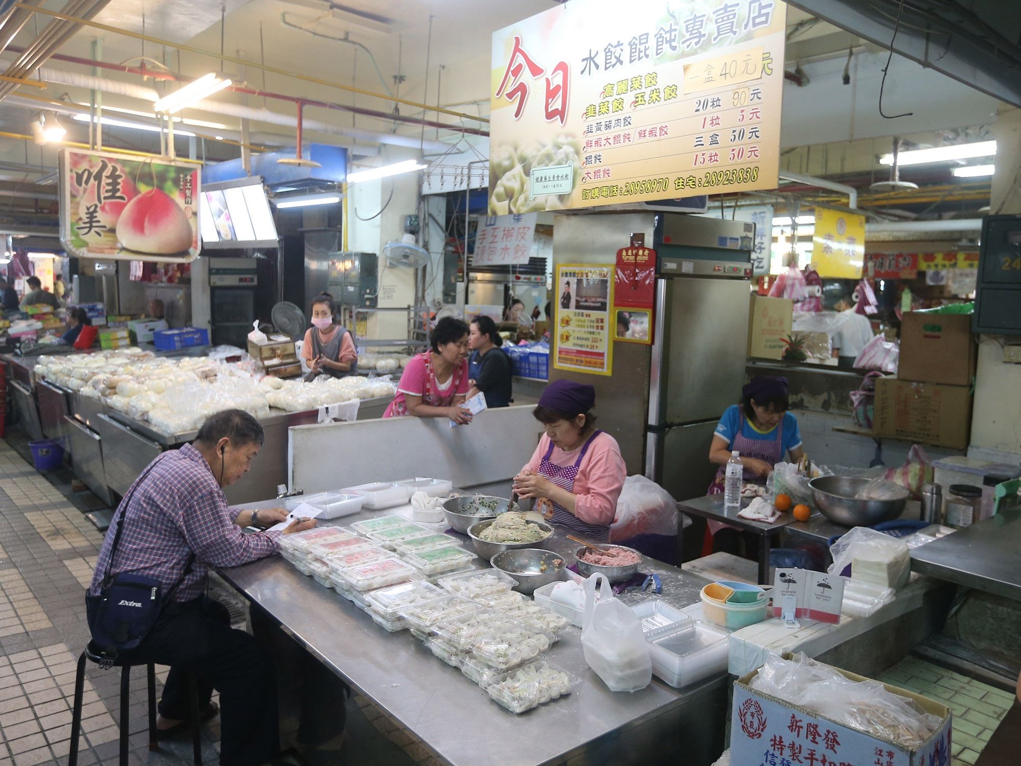 傳統菜市場重功能性,徐仲說,在北投市場,傳統飲食製作從前端生鮮到加工,一條鞭全包。市場供應了上游到下游所需,有製麵店做餃子皮,生鮮攤供餡料,也有攤商現地包餃子、餛飩。