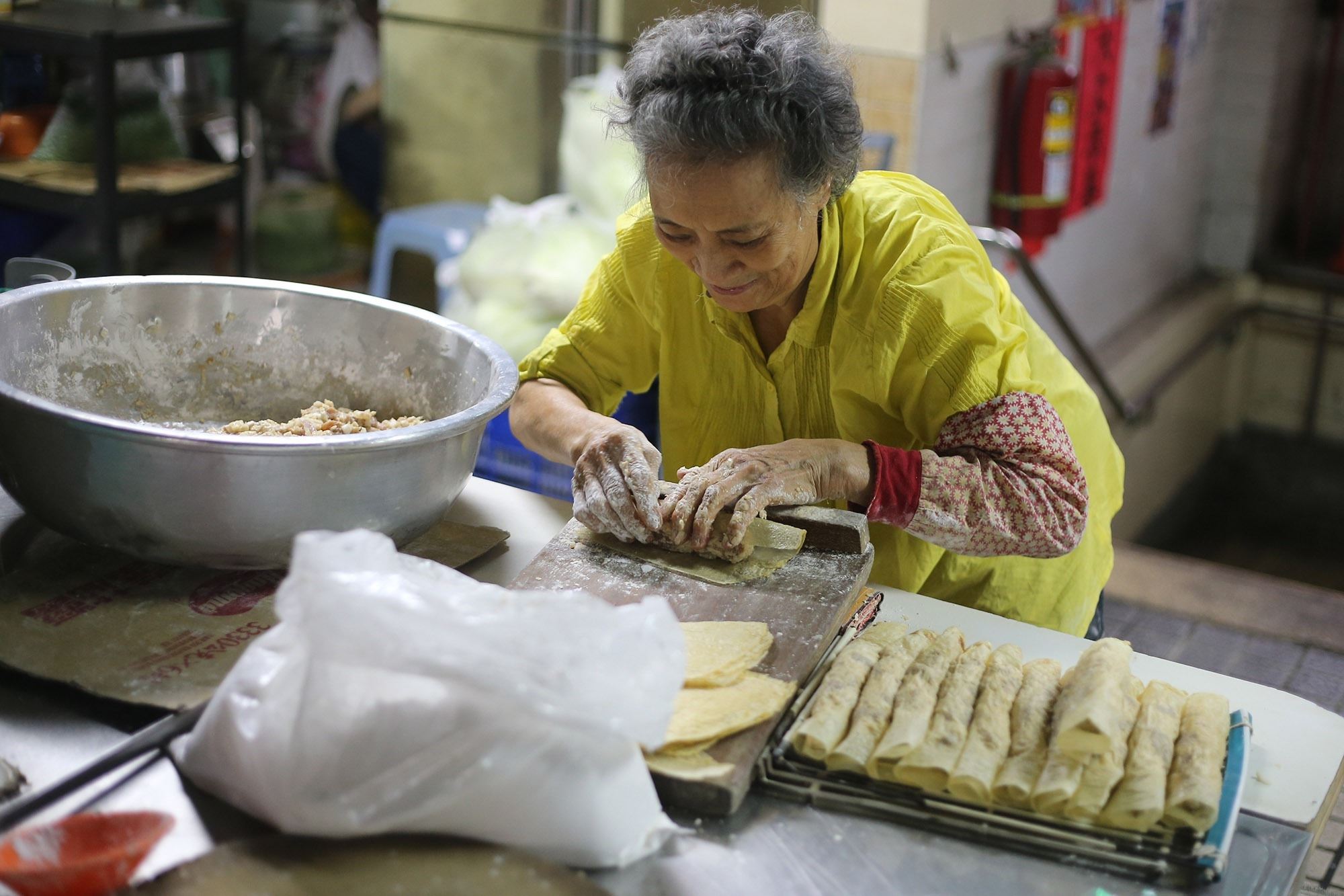已是第二代接手的二樓鼎邊銼攤位,老闆一邊忙著炸雞卷一邊說,市場以前到晚上11、12點都還熱鬧得燈火通明。「現在,差不多午餐時段過後,只剩下我在賣。」她提到,市場硬體老舊,需要改建,但大家很難凝聚共識。