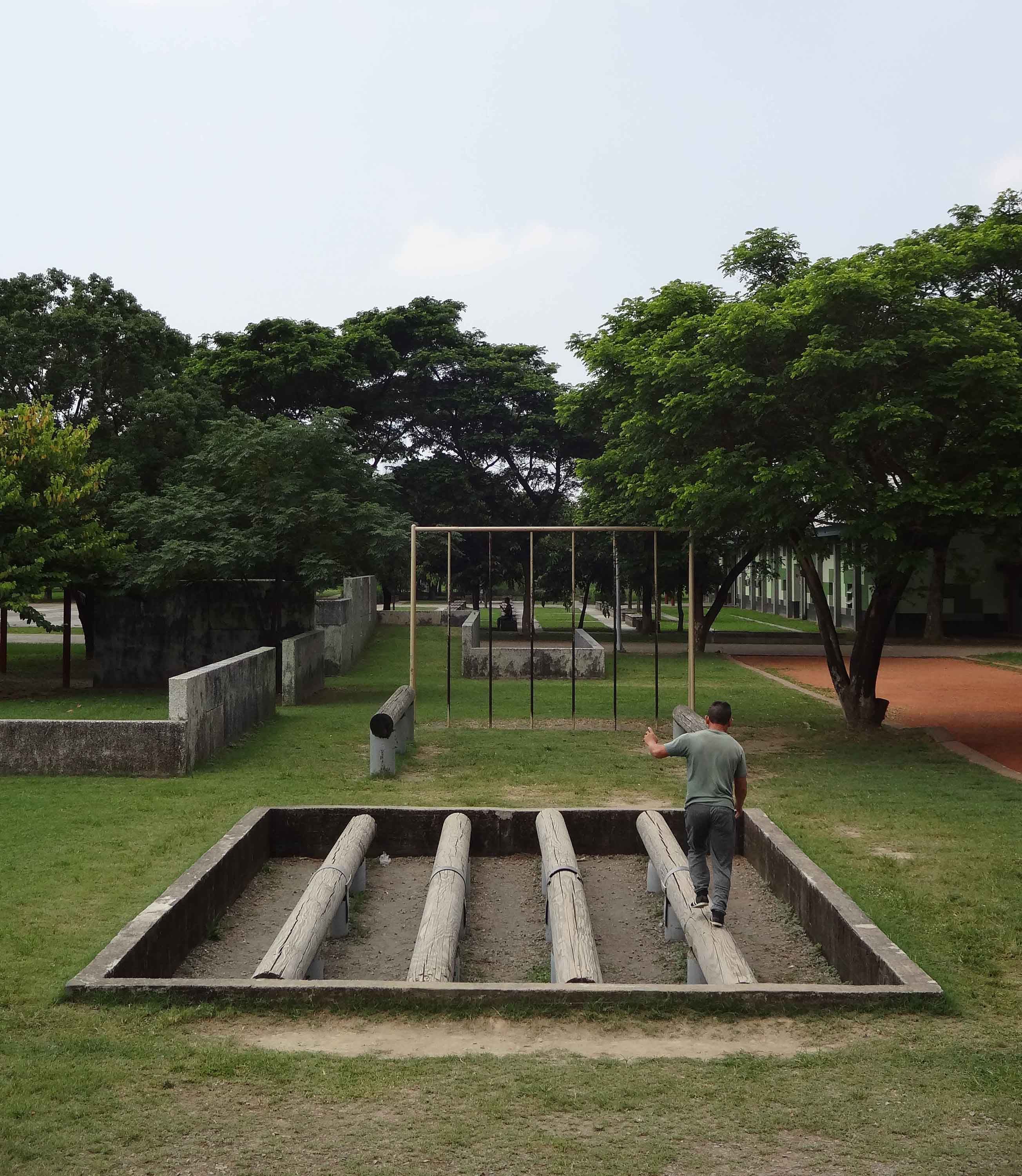 營區有南湖和北湖,以及練兵出操的連集合場、500障礙場、營福利社、老舊營舍和地標供水塔、眺望塔等,更有戰爭時供作戰指揮中心的地下碉堡,塗裝迷彩偽裝色彩的建物錯落在高聳遮蔭的老樹間。古往今年,無數阿兵哥曾在此同甘共苦磨破皮操練,也曾在老樹下懇親會暢飲冰涼飲料談天說地。