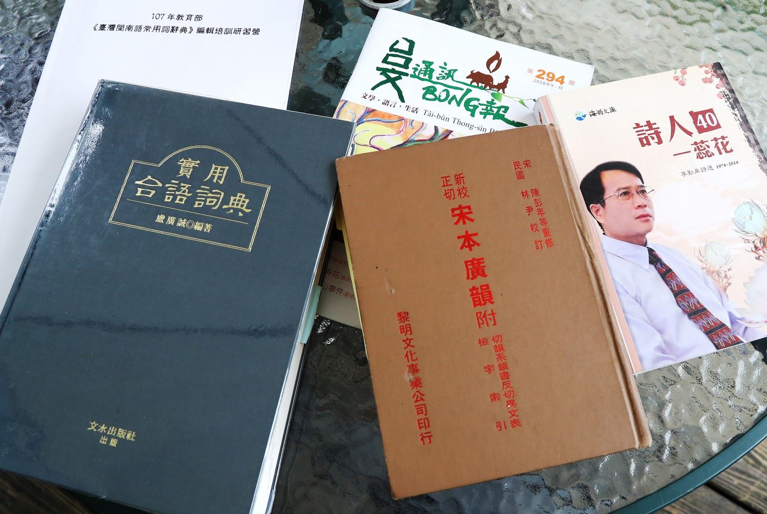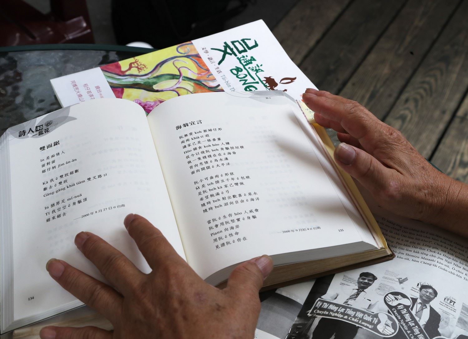 專業的熱情裡,是對本土方言的愛惜,他從書堆裡找出《詩人40一蕊花》翻到這篇「海翁宣言」,一句一句朗讀著。會念台語的人,看到這首詩可能多少還是有些看不懂、不太會念。「我們必須要知道,方言也有文學,而文學能豐富各層面的文化知識」,姚榮松說,正因為現代人漸漸都看不懂了,不會讀了,這些方言文學作品便成為小眾傳播,而傳播不出去。