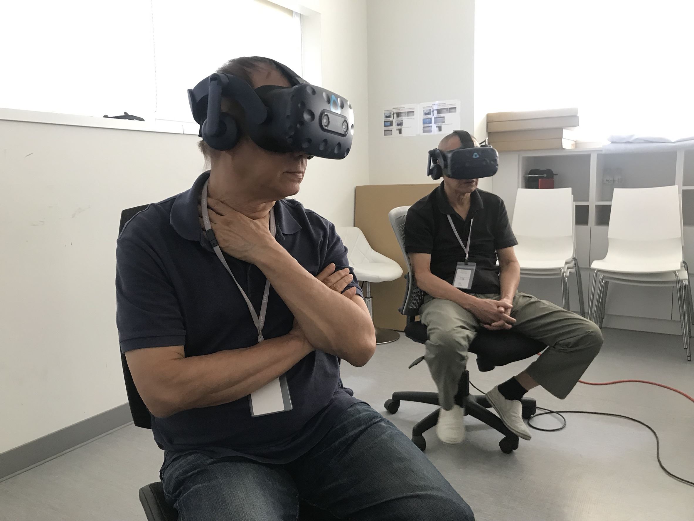 由於VR能製造出很個人且主觀的環境,「那能給人一種感受,主觀、臨場、真實的感受,因此假設是軍隊要進行演習操作、模擬突擊狀況,又或者是消防隊員需要模擬救援現場等,就很適合。」廖慶松說。