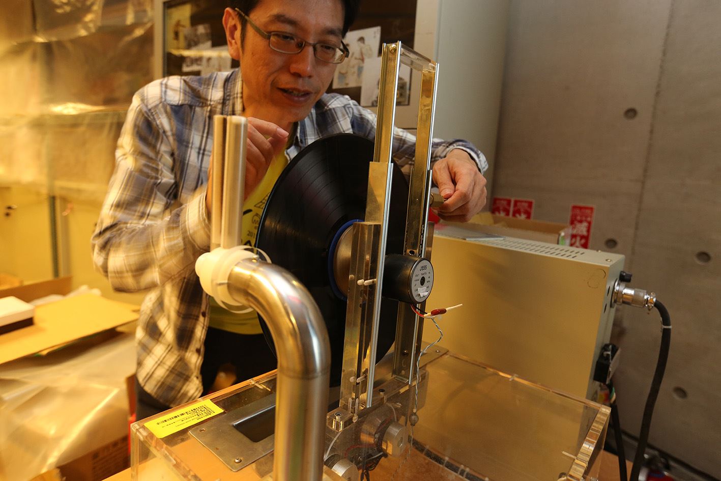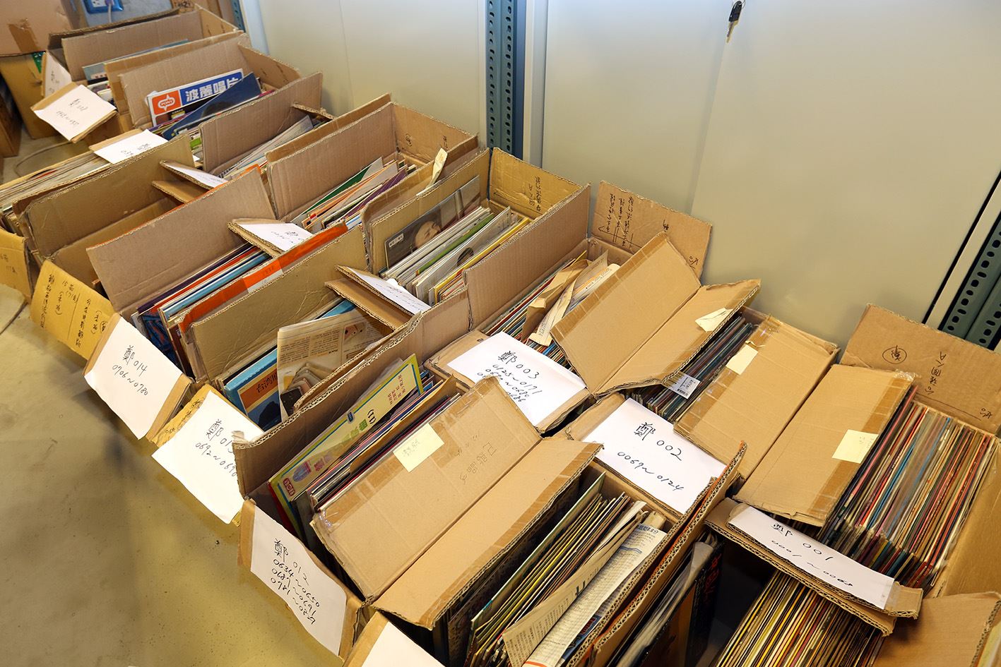走進國立台灣歷史博物館階梯教室左前方大門深鎖的倉庫,只見地上擺著10多箱黑膠唱片,幾張市面上罕見的蟲膠唱片,散落在桌上,已有80多年歷史的78轉唱盤靜靜地躺在一旁,眼前的這片零亂,簡直讓人無法相信這裡是「台灣音聲100年」的起點。