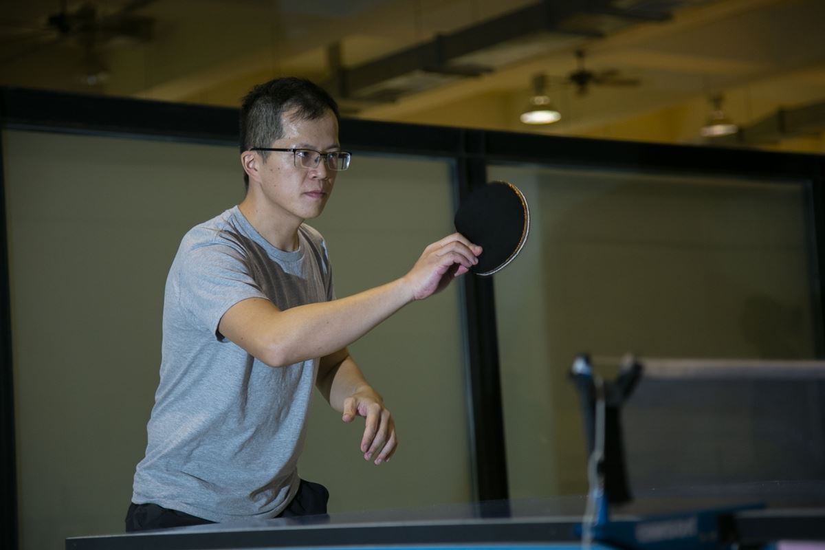 除了跑步、游泳,連明偉還喜歡打桌球。他形容道:「注視著一顆桌球,要怎麼在最短時間做出最準確的回擊,那不僅是專注,還有對於球的敏感度。細探來講,就是時間的感覺,如何控制自己的身體。」