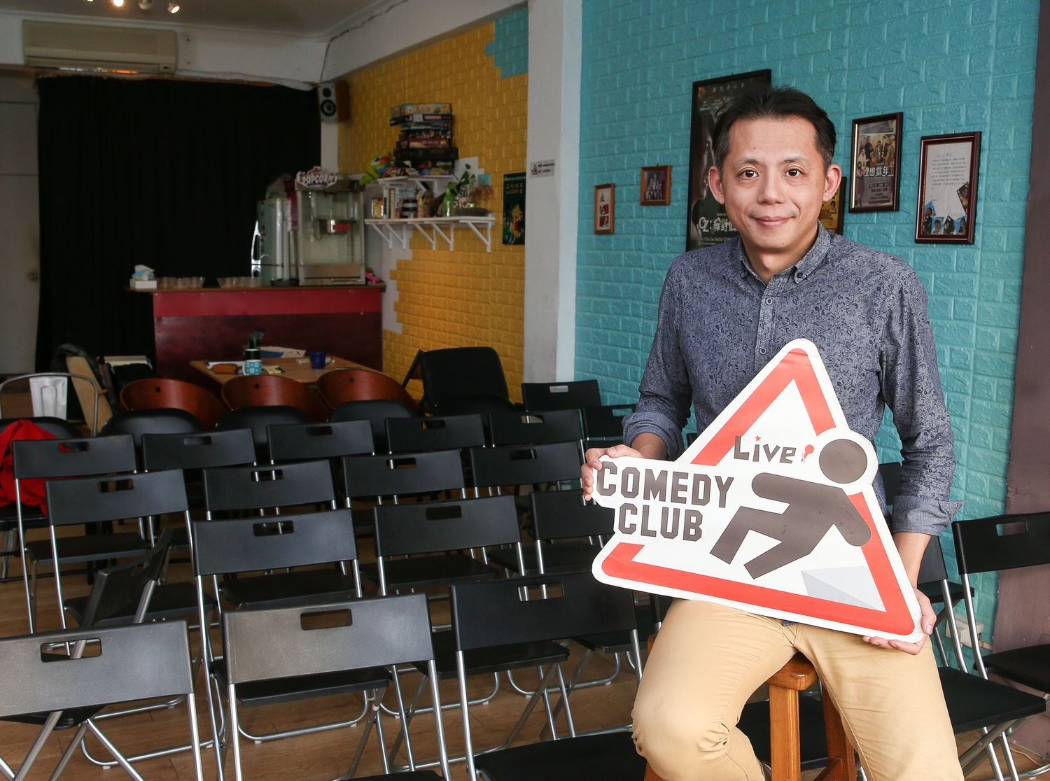 台上熱鬧,台下有個雜工,忙進忙出,燈光、音控、場地一手包。那個身影是卡米地喜劇俱樂部創辦人張碩修,這個喜劇園地就是他土法煉鋼、一手拉拔起來的。身邊的人都暱稱他「Social」,但本人一點也不Social,正經得很,如同他受訪,一點也不搞笑,氣氛輕鬆但嚴肅面對每個問題。