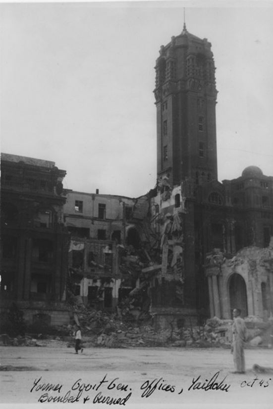 「總統府至少中了兩顆炸彈,除了門廳垮掉,靠近司法院這邊的走廊也整個垮掉」,事實上,總統府原本是鋼構建築,但薛琴說,當時總統府中的是燒夷彈,「據說燒了三天三夜,裡面的門窗啦、瓦片啦,全部都燒掉了。」但當時的政府沒錢,由省府復建時,決定捨棄鋼構而以木頭重建,連屋架也連帶改成木頭材質,屋頂則用較便宜的鐵皮,未能徹底翻修。