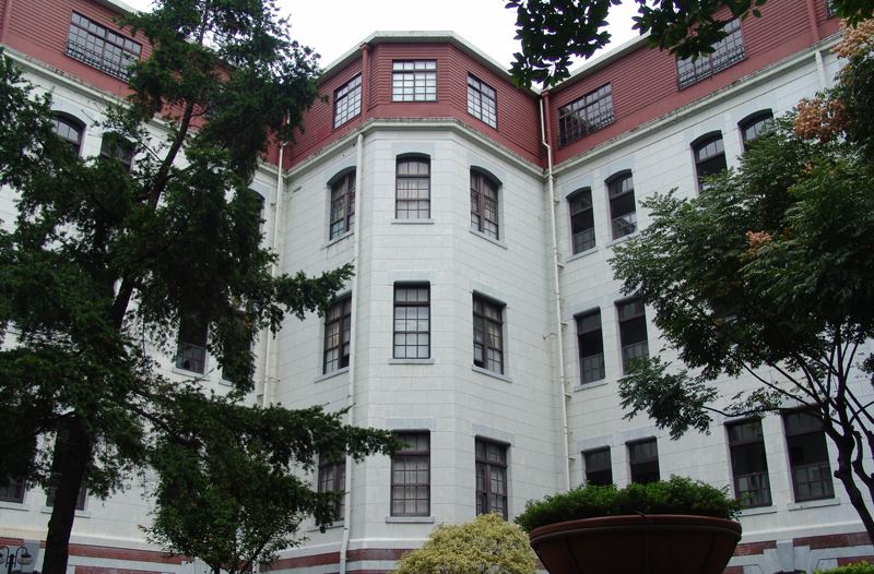有意思的是,若繞行整個建築物一圈,會發現除了北側房間以外,其餘各面都有前後陽台,「這設計是因應台灣多雨潮濕天氣,也避免陽光直曬。」而在內院的四個角落,從一到五樓都有一轉角斜切了45度的吸煙室,「這個設計是在評審中村達太郎的堅持下實行,不僅具有保持室內空氣環境潔淨的功能,也加強了整體結構耐震力。」