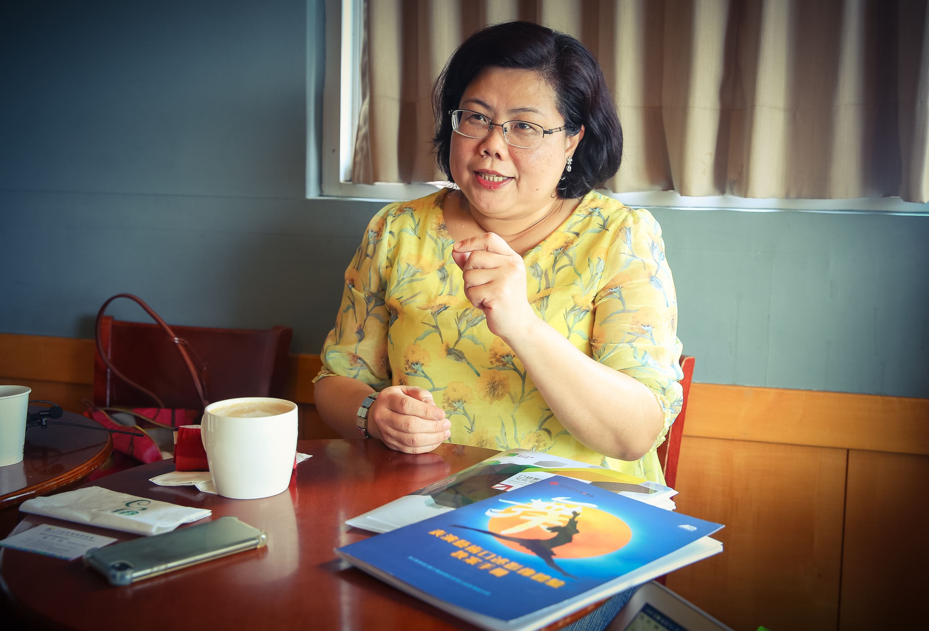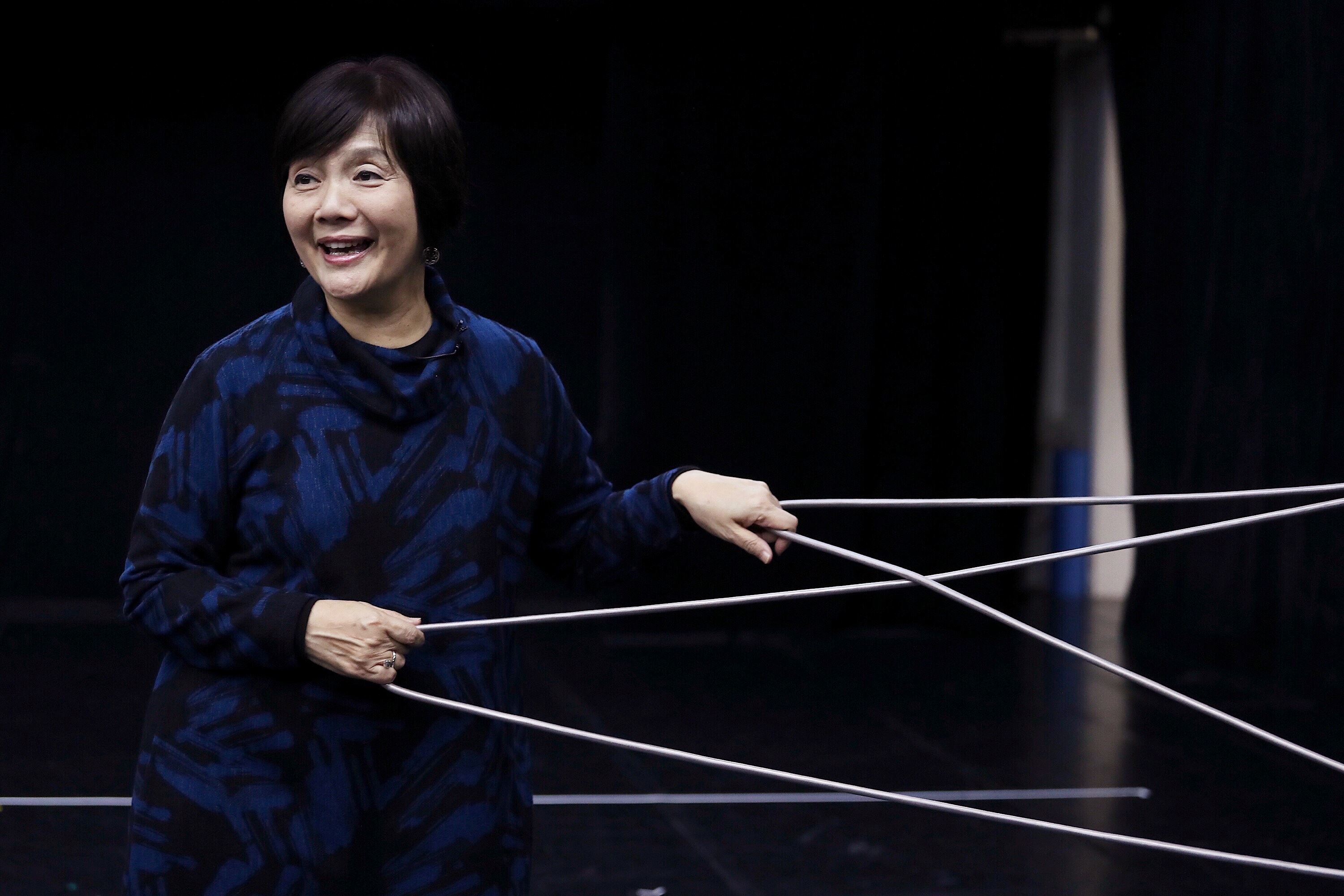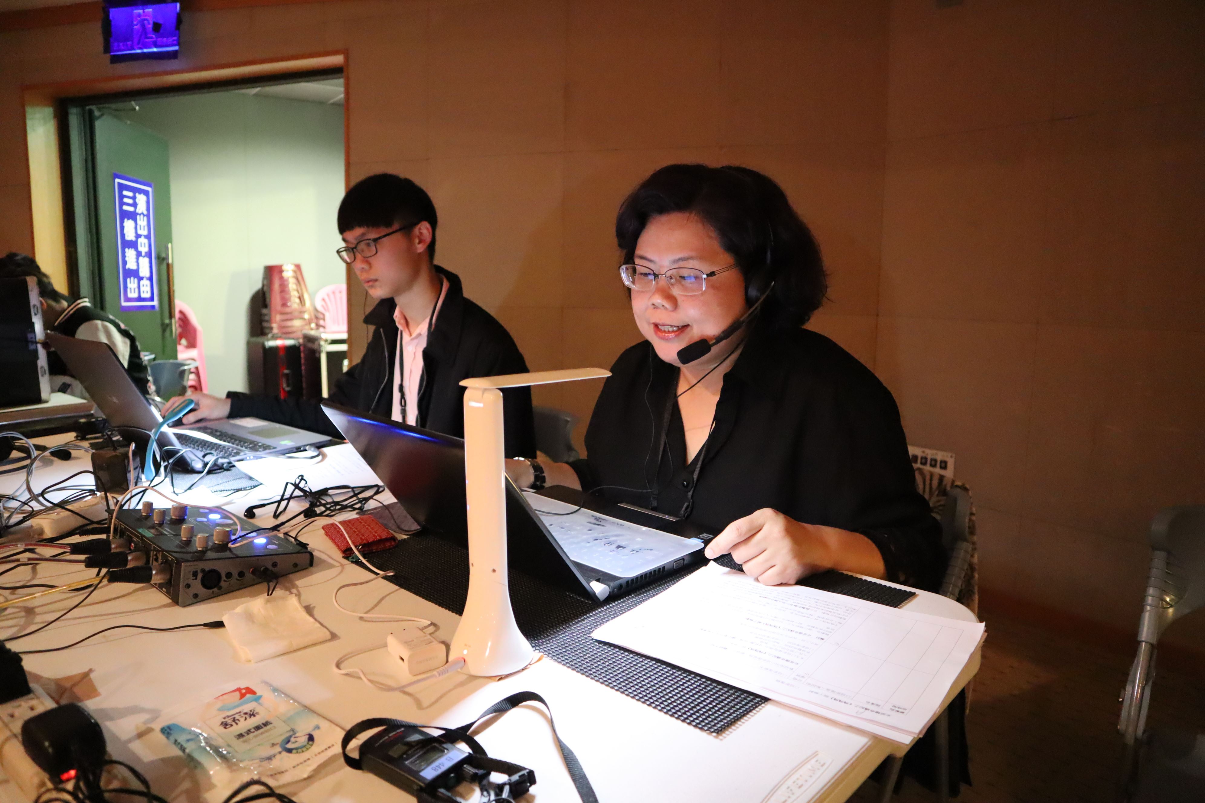 「《飛飛飛》親子舞劇的故事,描述了一隻名叫蛛兒的小蜘蛛想學飛的冒險旅程!在故事裡,蛛兒勇敢追求夢想,也了解了自己天生的特質。」耳機裡傳來這樣的介紹,聲音來自坐在觀眾席後方的趙又慈,她戴著眼鏡、留著一頭黑短髮,看起來有著鄰家媽媽的親切感,一臉慈祥和藹。
