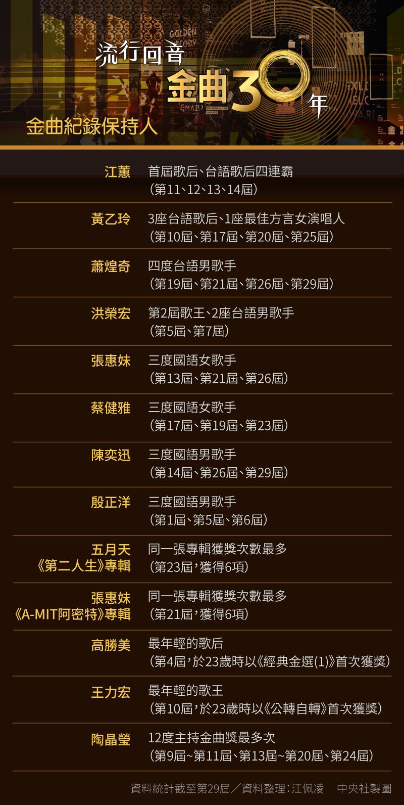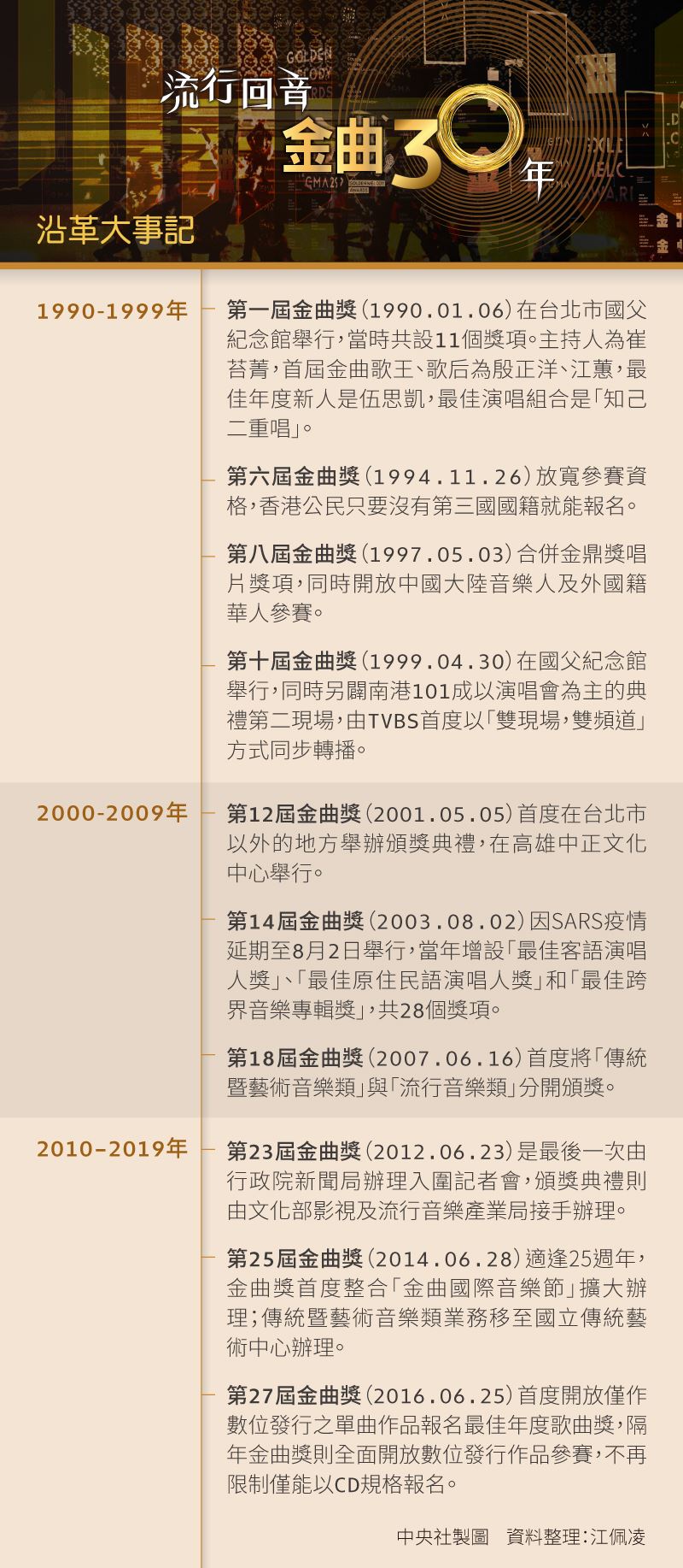 從1990年開辦至今,金曲獎步入30而立之年,已被各地華人音樂工作者視為最高榮耀,這座競技場包容著民歌、古調、歌謠到電音、饒舌、搖滾等曲風,經過每屆評審挑剔的耳朵,用獎座肯定值得嘉許留名的音樂人和作品,成為多年來在華人樂壇屹立不搖的神聖地位。