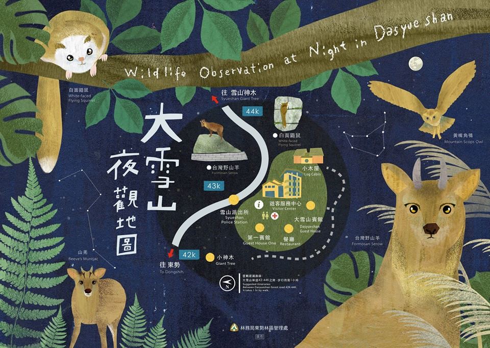 東勢林區管理處今年4月舉辦「大雪山,夜觀地圖」,宣傳海報同樣用插畫呈現,並帶出夜宿資訊,網友都留言讚賞;嘉義林區管理處今年初辦阿里山花季,還推出阿里山國家森林遊樂區的花季紀念票券,手繪插畫風櫻花的門票,受遊客喜愛並收藏;新竹林區管理處去年在復興區東眼山國家森林遊樂區舉辦「回森林家」活動,邀請具森林、里山、林產物等面向創作的「職人」在森林擺攤,今年續辦,同樣大受歡迎。