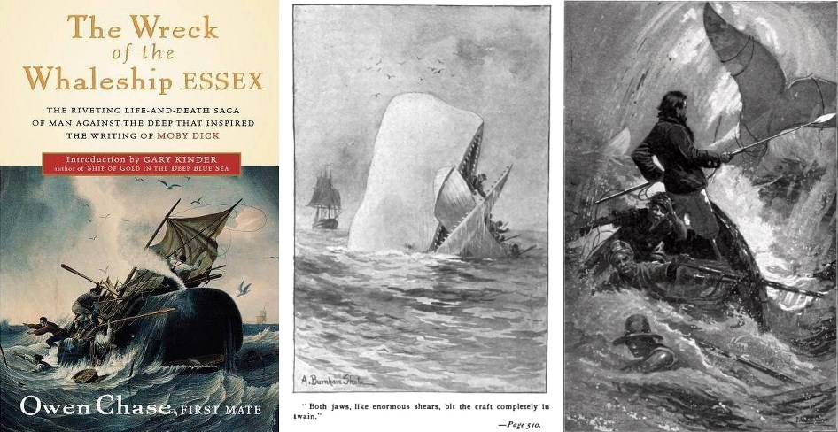 《白鯨記》的故事靈感來自於1820年的艾賽克斯號(Essex)沉沒事件:這艘來自美國麻州南塔克特島的捕鯨船,在南美西岸外海遭一頭80英尺長(約24公尺,比兩輛公車還長)、80噸重的超大抹香鯨猛撞後沉沒。大副歐文.卻斯(Owen Chase)把船難經過寫成寫成一本書,《白鯨記》第45章曾摘錄一小段引文,只見卻斯大副將那鯨魚描繪成「身形令人感到驚駭無比,看得出來牠充滿怨念,怒火中燒。我們衝進鯨群之後,牠從鯨群裡直接游出來,因為我們傷了牠的三個同伴,牠好像與我們有不共戴天之仇。」