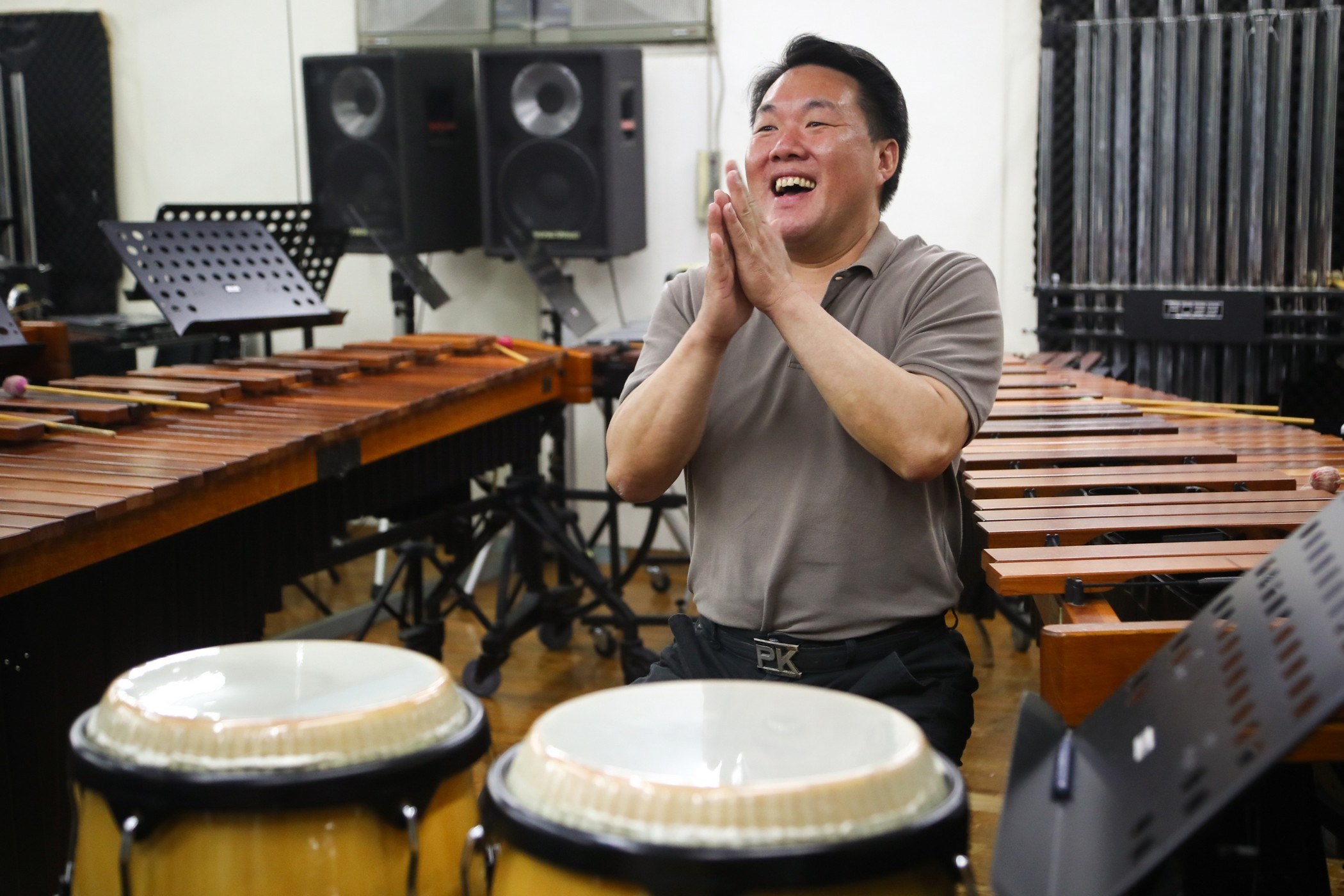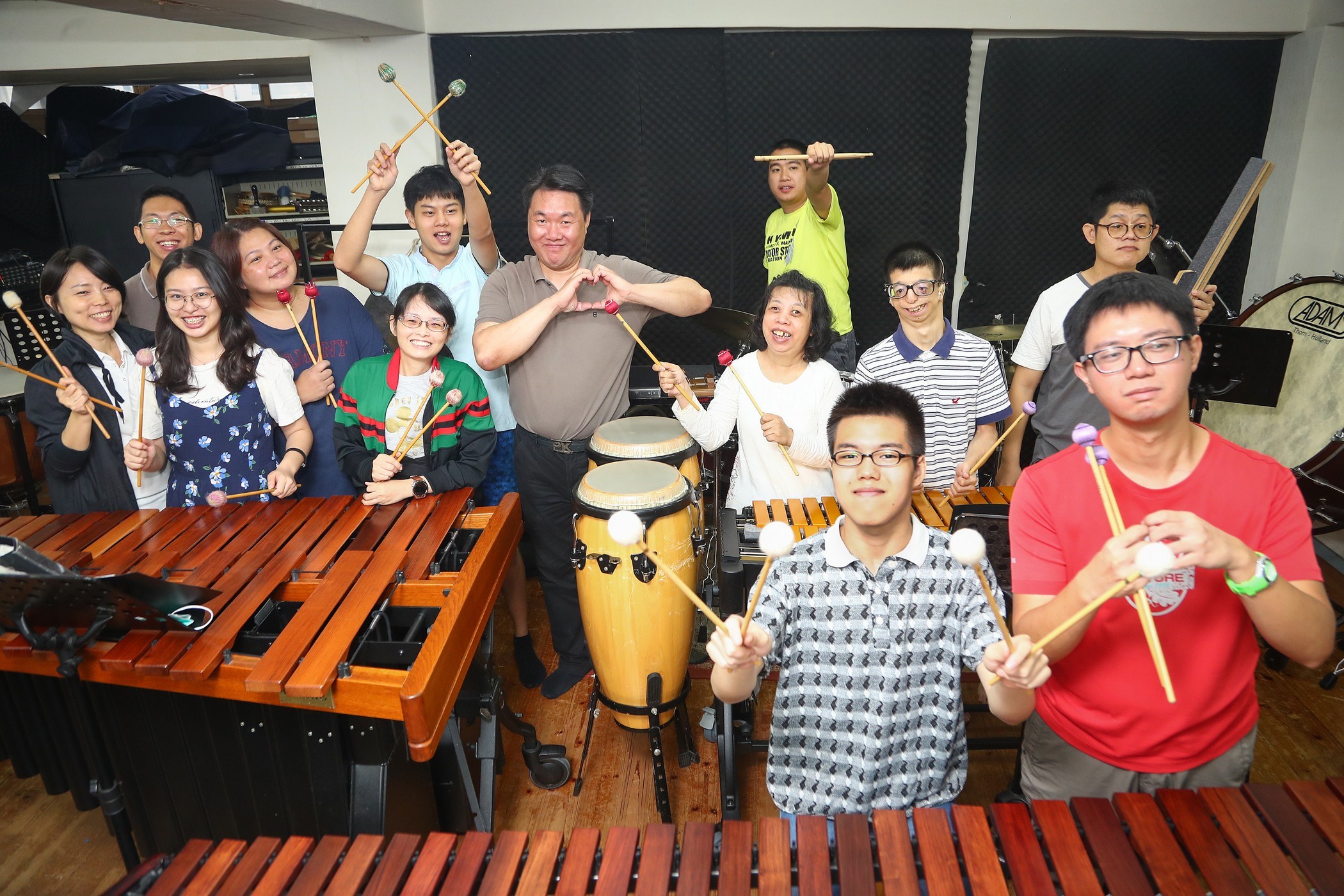 何鴻棋打趣說,他自己是「腦殘」,才會憨膽創立了這個打擊樂團,至今15年,不曾間斷。